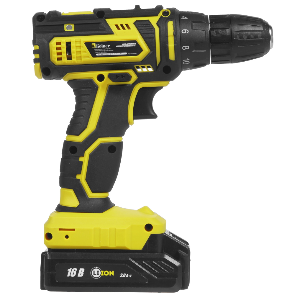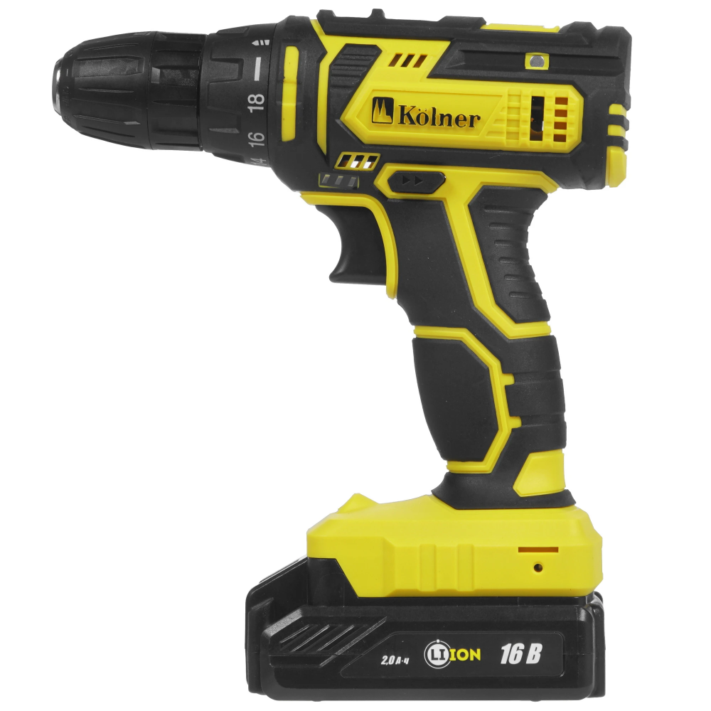 Патрон с быстрозажимным креплением позволяет легко менять биты и сверла. Среди прочих характеристик Kolner KCD 16-2L отмечаются реверс и подсветка рабочей области. Поставляемые в комплекте 2 аккумулятора отличаются отсутствием саморазряда и эффекта памяти, а также продолжительной автономностью. Также в наборе имеются устройство зарядки, двусторонняя бита и клипса.
