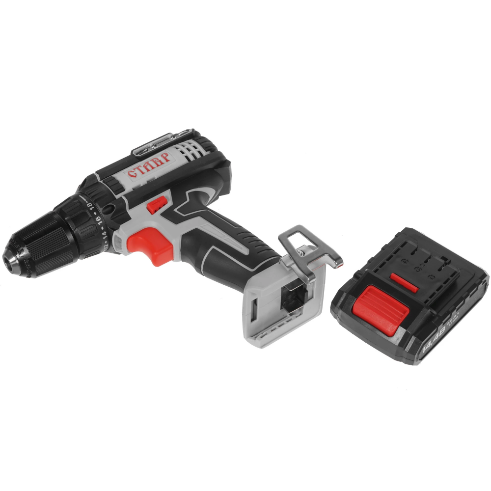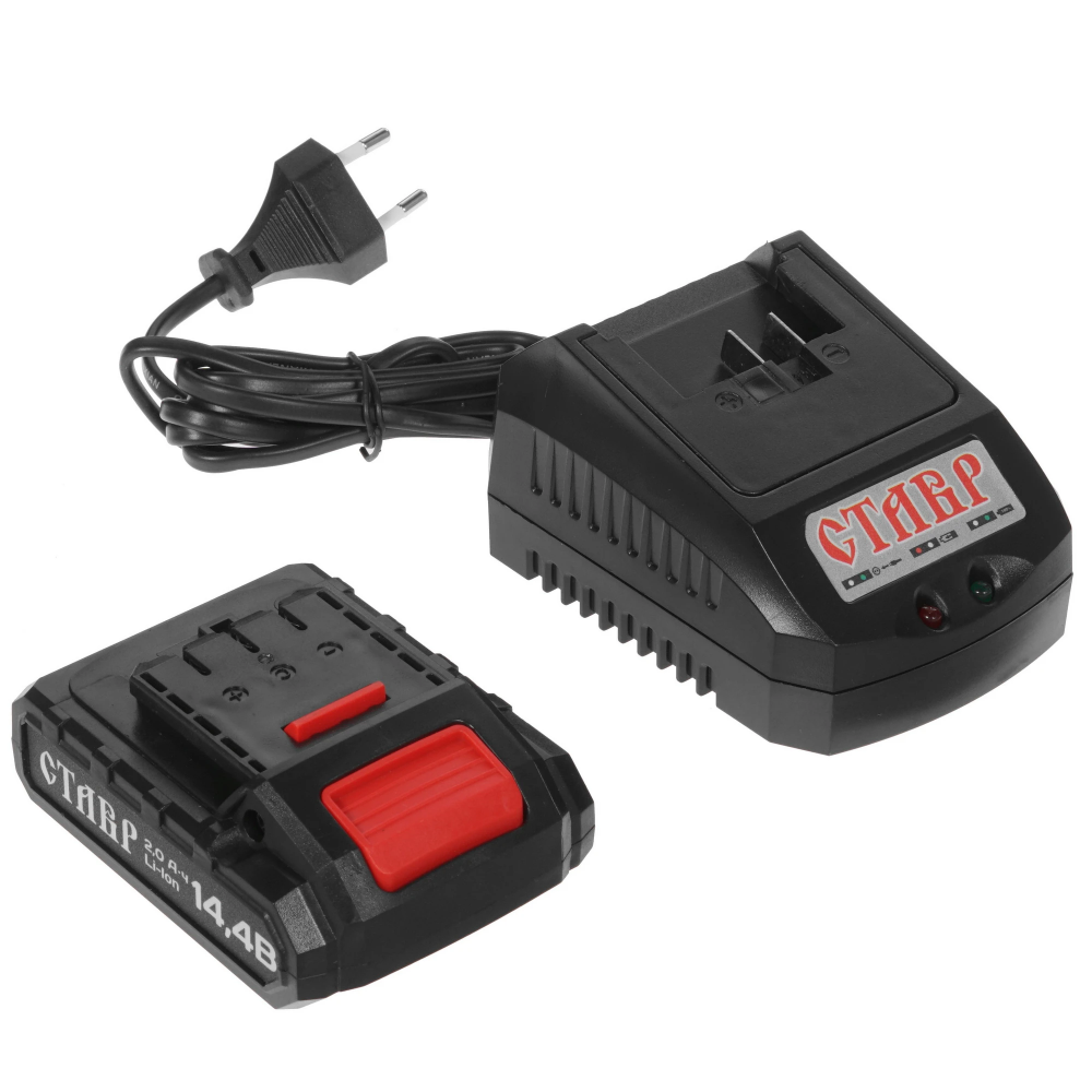 Прибор Ставр ДА-14.4ЛК с двумя скоростями может действовать на холостом ходу при 1450 об/мин, а также позволяет настраивать глубину закручивания и крутящий момент. С его помощью вы легко просверлите отверстия в древесине на глубину 2.6 см или металле на 1 см. Инструмент поставляется в жестком кейсе вместе с двумя аккумуляторами и ЗУ, набором сверл и бит, удлинителем для бит.