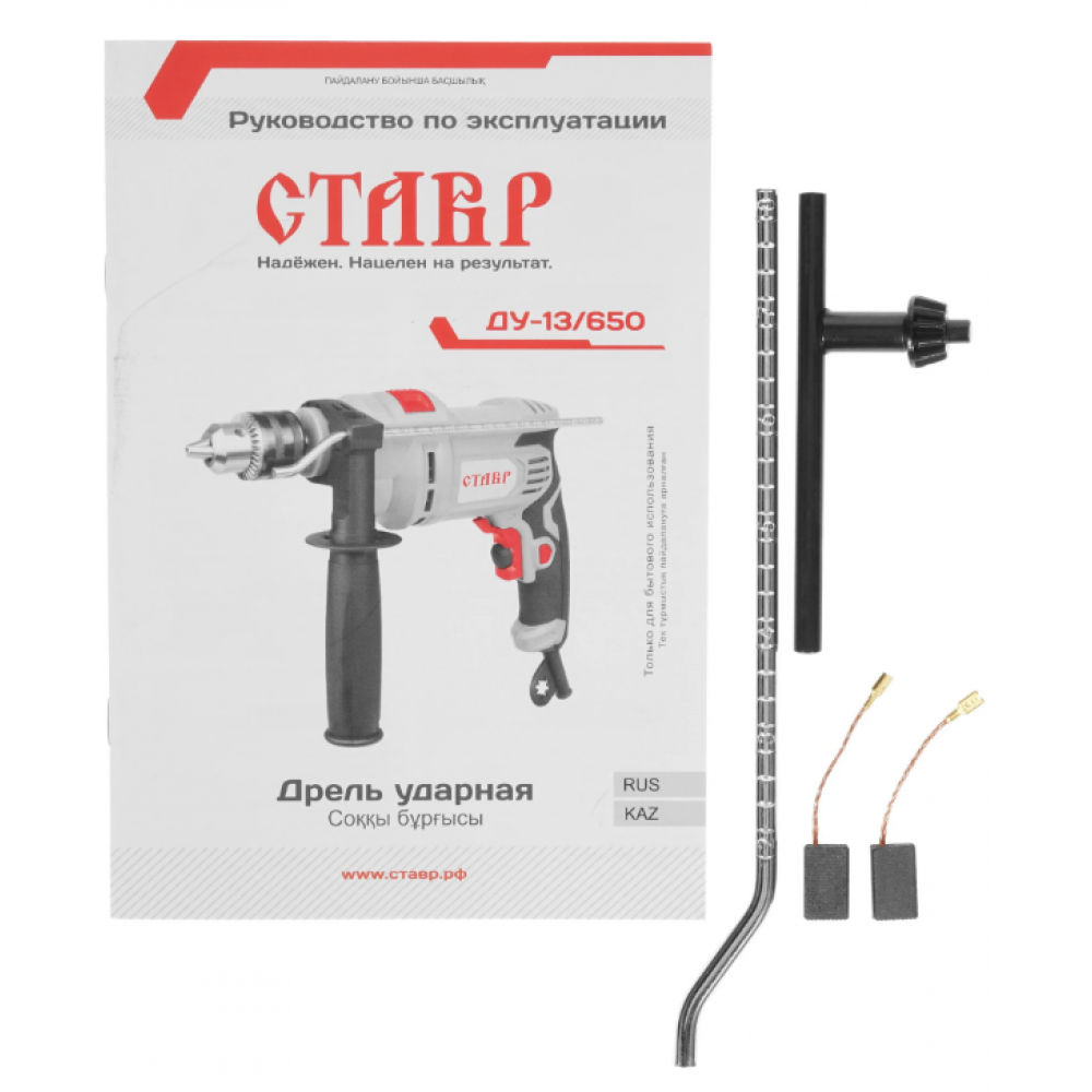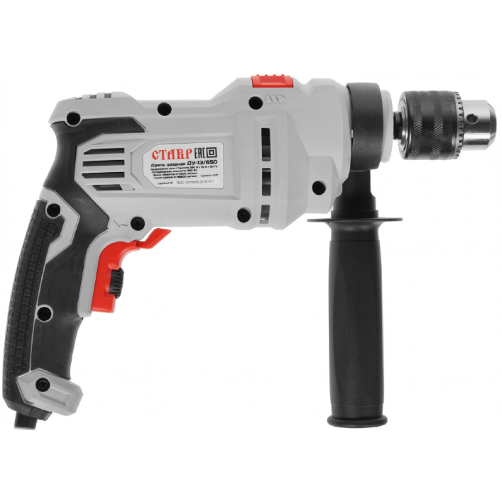 Дрель Ставр ДУ-13/650 использует в своей основе двигатель мощностью 650 Вт, что обеспечивает скорость до 2300 об/мин и 36800 уд/мин. Благодаря высокой производительности и ударному режиму данная модель позволит легко создавать разноразмерные отверстия в любых материалах. Установка оснастки производится в патрон ключевого типа. Диаметр сверла может варьироваться от 1.5 до 13 мм.