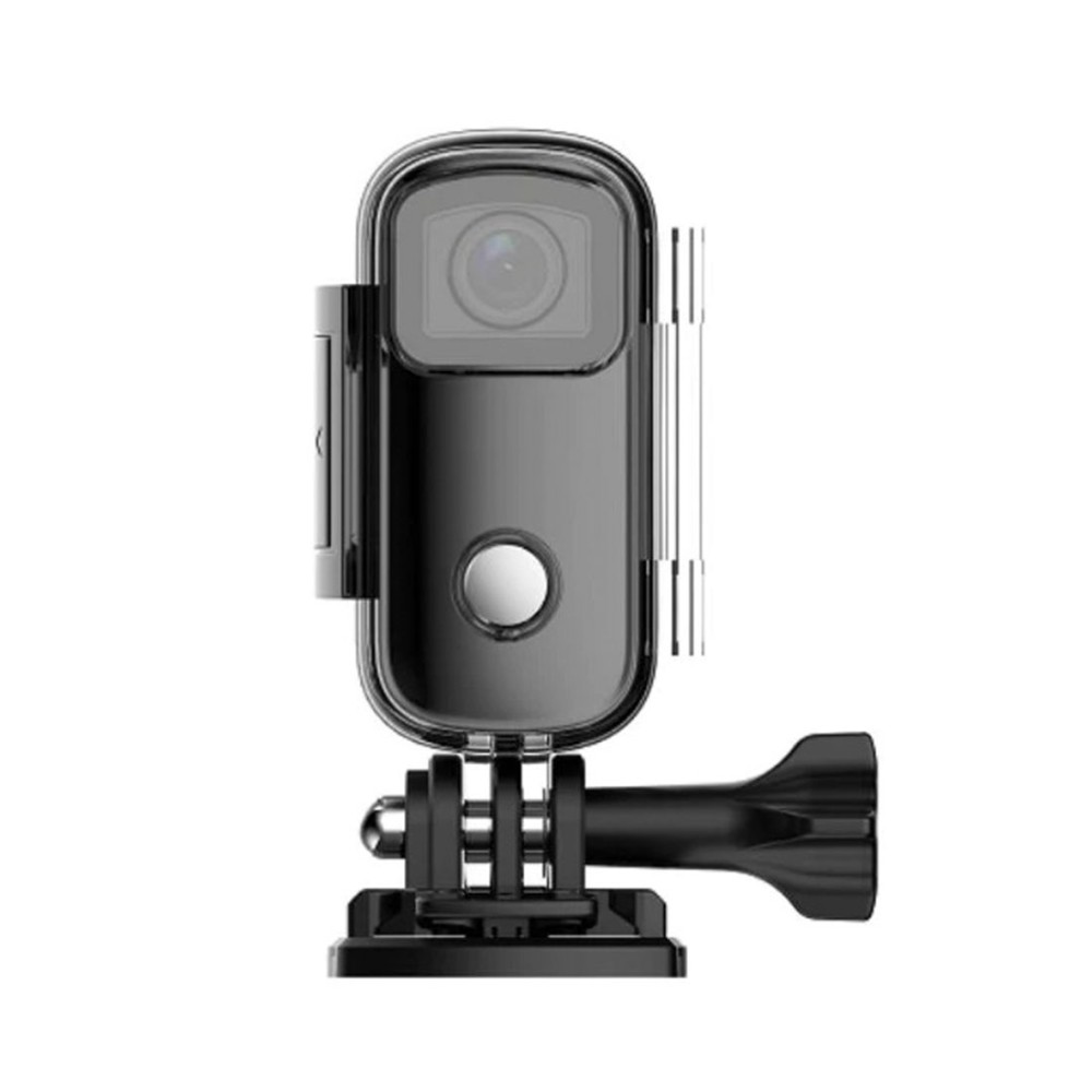 Экшн-камера SJCAM C100+ с пластиковым корпусом поставляется с подводным боксом и страховочным шнуром, ровной клеящейся площадкой, креплением в виде защелки и кабелем для зарядки. Емкости АКБ 730 мАч хватает для записи 130 минут видео. Из-за отсутствия собственной памяти потребуется SDHC-карта объемом до 128 ГБ.