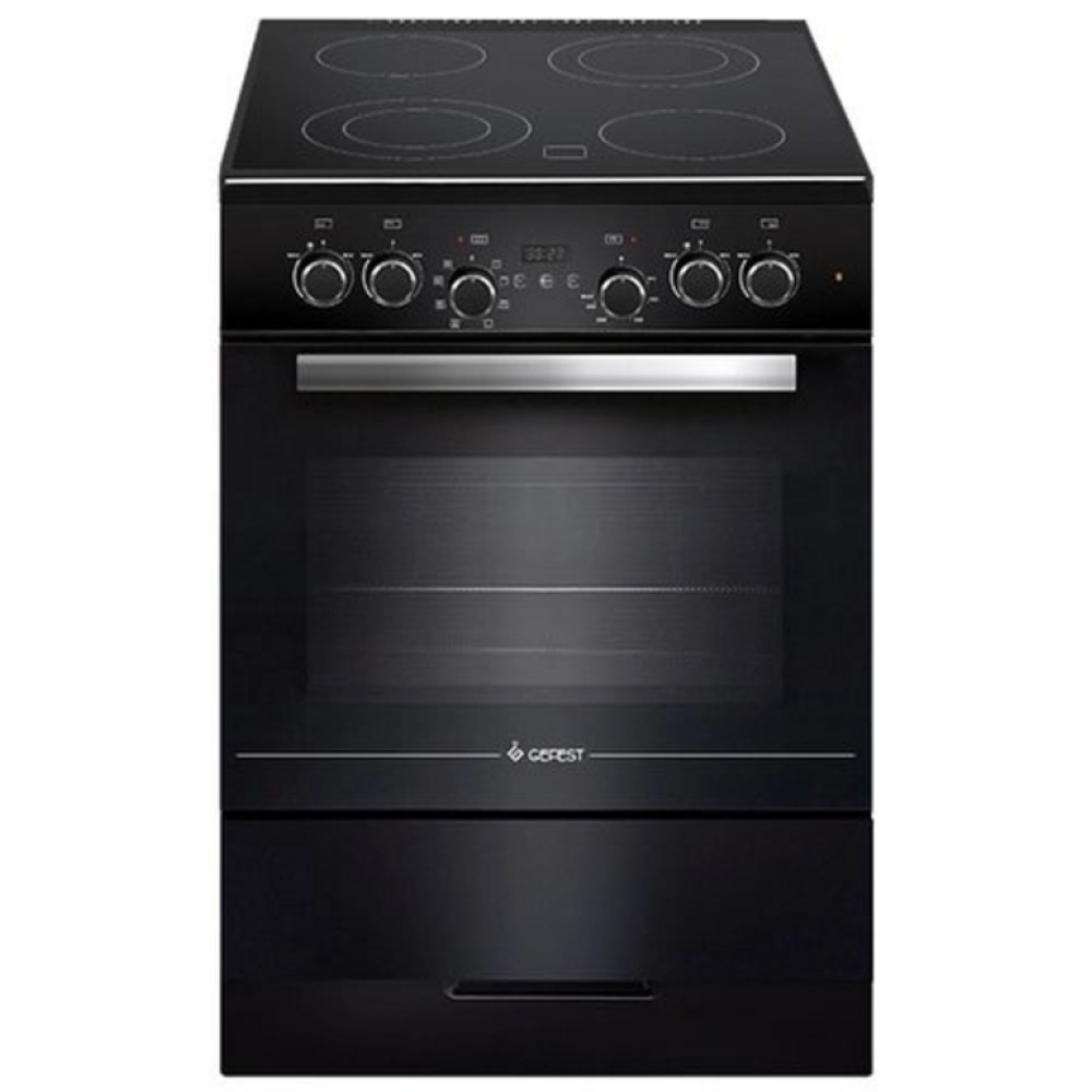 Электрическая плита GEFEST ЭП Н Д 6560-03 0057 представлена в стильном черном дизайне, оснащена 4-мя конфорками и вместительной 52-литровой духовкой. Для управления используются простые поворотные рычаги. Также оборудование дополнено дисплеем с часами и электронным таймером, а также 8-ю рабочими режимами. Конструкция GEFEST ЭП Н Д 6560-03 0057 дополняется небольшим ящиком для хранения посуды, расположенным под духовым шкафом. Сама духовка дополнена мощным грилем и удобным вертелом, конвекцией и яркой подсветкой