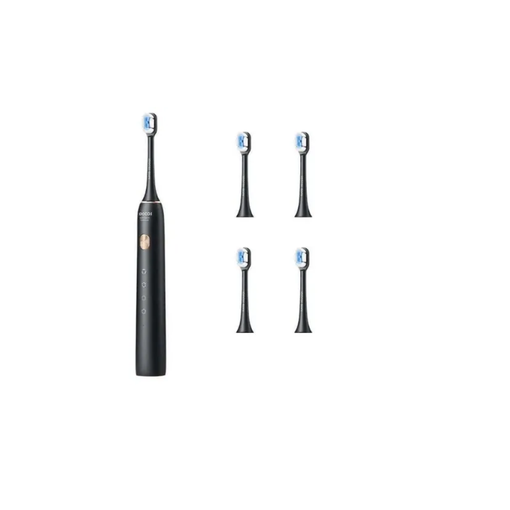 Звуковая электрическая зубная щетка Soocas X3U Pro черного цвета имеет четыре режима работы и четыре насадки. Устройство питается от встроенного аккумулятора и работает до 180 дней автономно. Класс защиты IPX7 разрешает пользоваться моделью даже в душе.