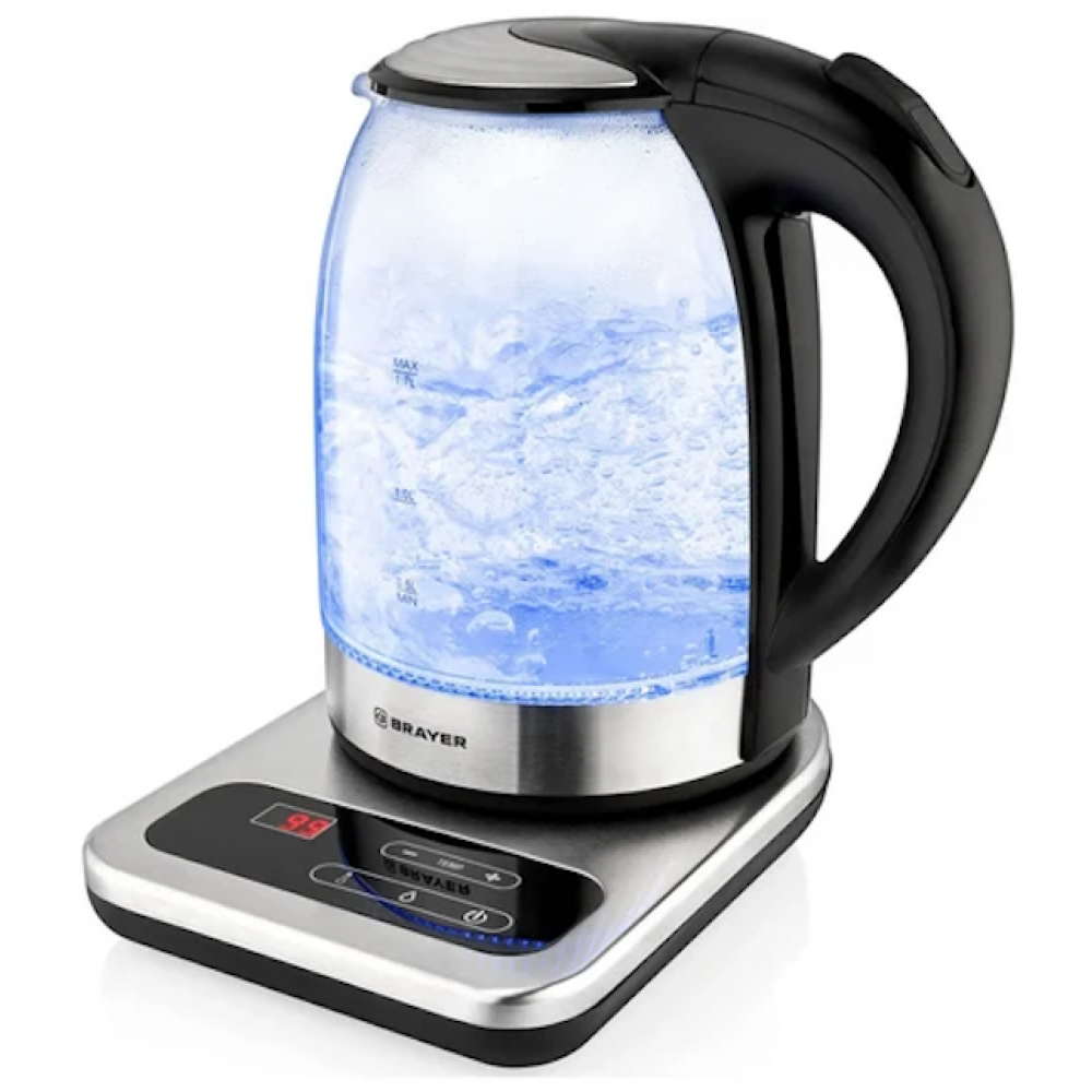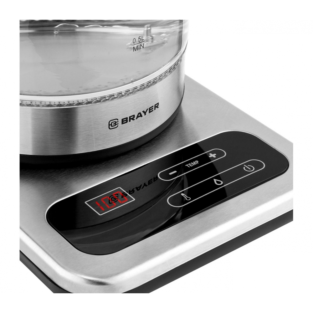 Благодаря наличию терморегулятора прибор Brayer BR1003 способен поддерживать температуру в шести режимах в течение двух часов. Комфортной эксплуатации способствует наличие шкалы уровня воды, приятной голубой подсветки и ярких индикаторов. При закипании или достижении заданной температуры срабатывает звуковое оповещение. Также имеется защита от случайного включения без воды.