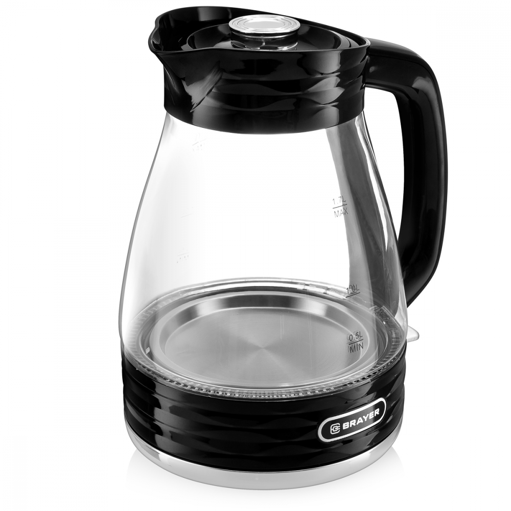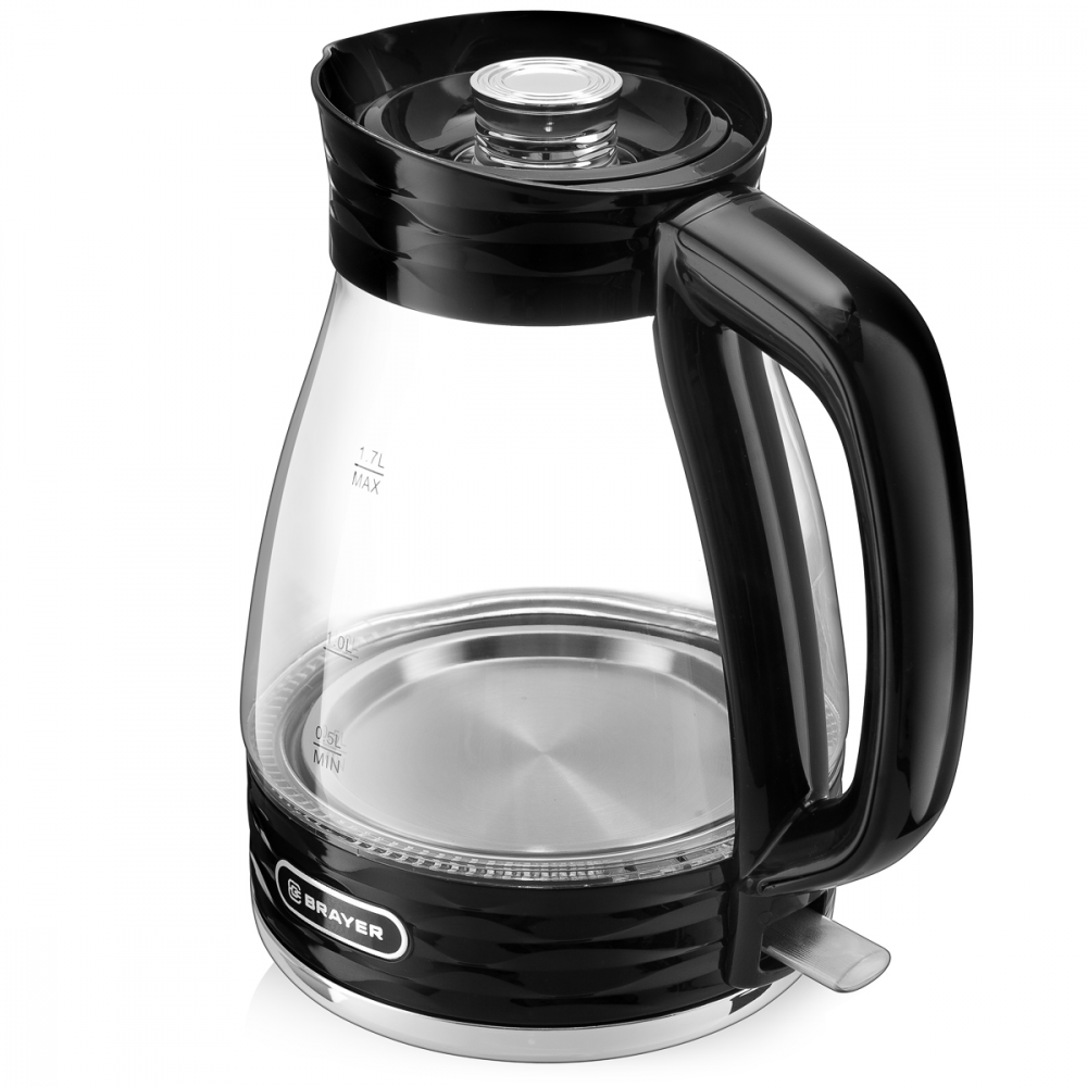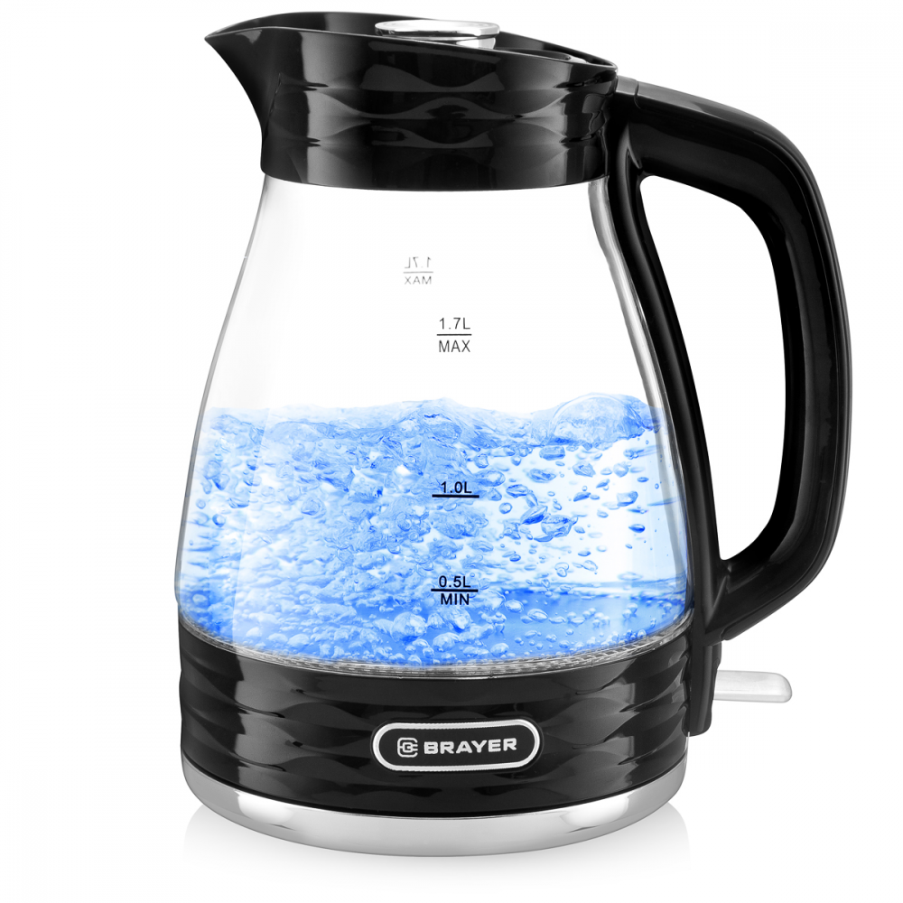 Электрочайник BRAYER BR1029BK обладает мощностью 2200 Вт, поэтому быстро доводит воду до кипения. Объем 1.7 л будет оптимален для семьи. Модель с закрытым элементом нагрева выполнена в корпусе из термостойкого стекла и содержит пластиковую крышку и ручку. Шкала с двух сторон корпуса наряду с прозрачными стенками позволяет контролировать уровень воды, своевременно дополняя емкость.