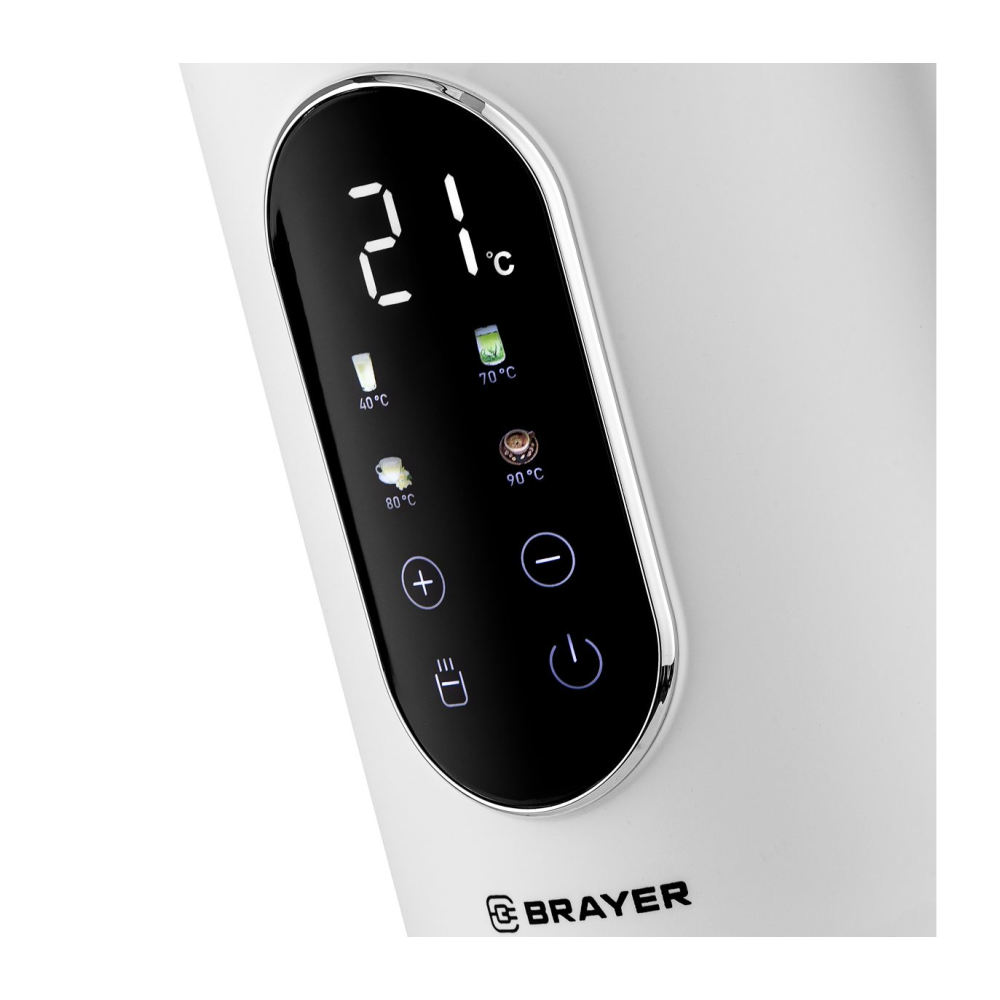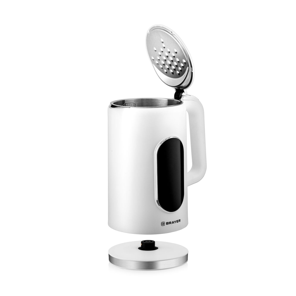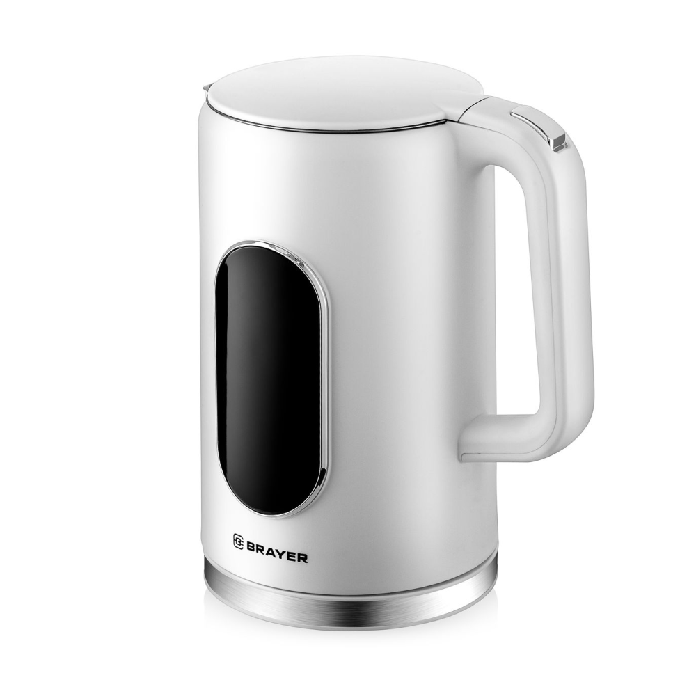 Электрический чайник BRAYER BR6107WH имеет максимальную мощность 2200 Вт и объем 1.7 л. Корпус выполнен из нержавеющей стали с пластиковым покрытием и оснащен технологией Cool Touch, что предотвращает нагрев внешней поверхности. Устройство поддерживает сенсорное управление и предлагает функции кипячения и подогрева воды для различных сортов чая (40-100 °C), а также поддержание заданной температуры в течение 2 часов. Чайник автоматически отключается при закипании и при отсутствии воды.