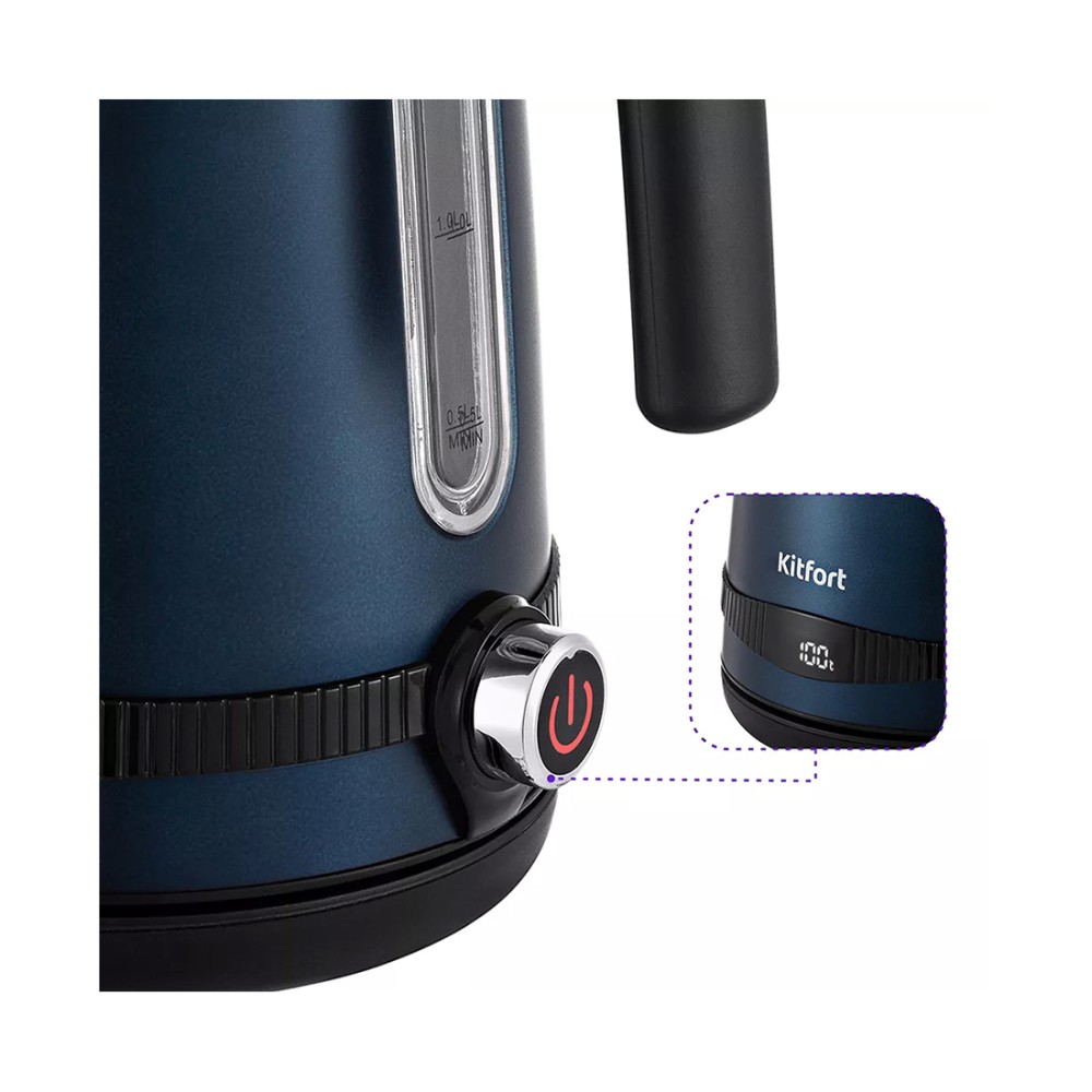 Стильный электрический чайник Kitfort КТ-6121 с LED-дисплеем предназначен не только для кипячения, но и нагрева воды до температуры от 40 до 100°С, что удобно при заваривании различных сортов чая, приготовления кофе и подогрева детского питания.
