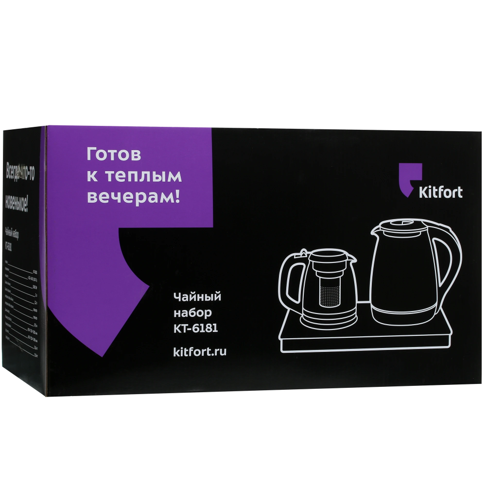 Чайный набор Kitfort КТ-6181 позволяет подогреть воду и заварить напитки. В комплекте содержится кувшин объемом 1.2 л, внутри которого расположен фильтрующий элемент. Он предупреждает попадание в чашку посторонних примесей. Подставка с электронным управлением служит для выбора и поддержания температуры.
