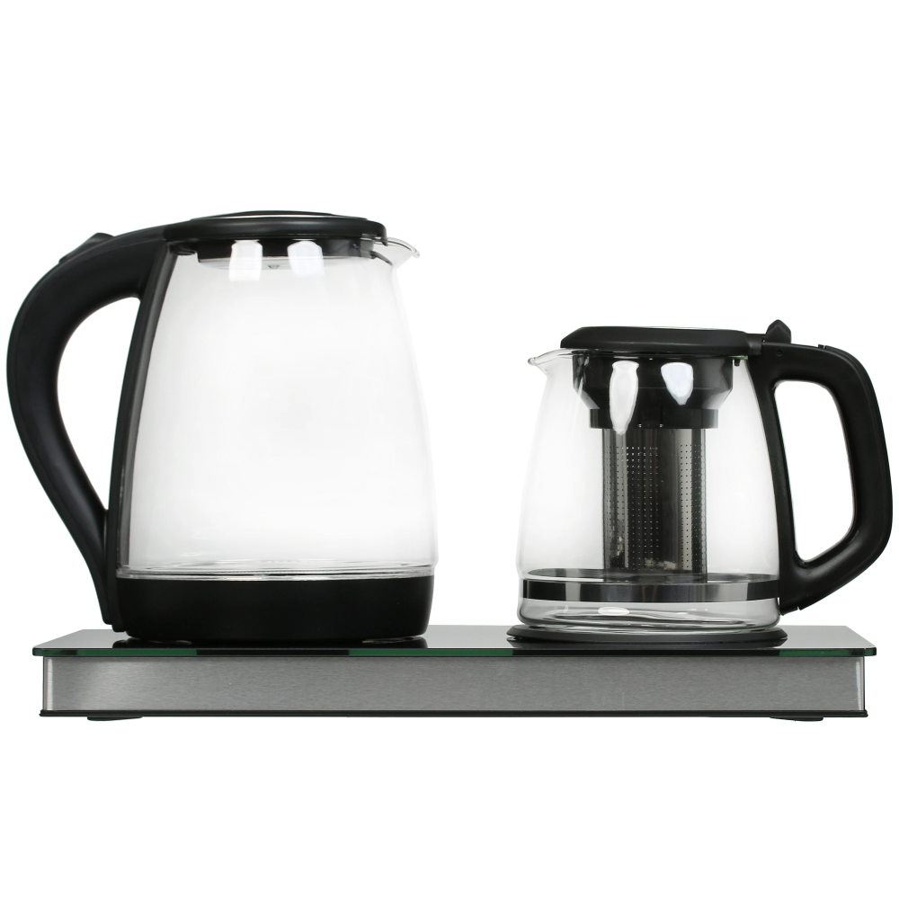 Чайный набор Kitfort КТ-6181 оснащен дисплеем, который транслирует заданные параметры. Корпус чайника объемом 2 л выполнен из пластика и стекла. Подобное сочетание материалов отличается устойчивостью к термическому воздействию и легкостью при удалении загрязнений. Открыть крышку можно путем легкого нажатия. С началом работы активируется голубая подсветка. Мерная шкала информирует об остатке содержимого. Защитная технология ограничивает включение прибора при нехватке жидкости.
