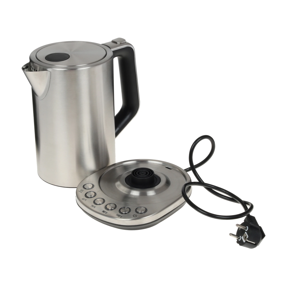 Основой для корпуса стала нержавеющая сталь. Она не подвергается процессам коррозии и не покроется следами ржавчины. Объем чайника стандартный – 1.7 литра, этого будет достаточно для владельцев. Мощность – 2000 Вт.