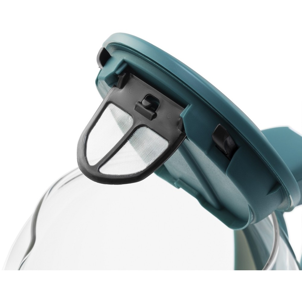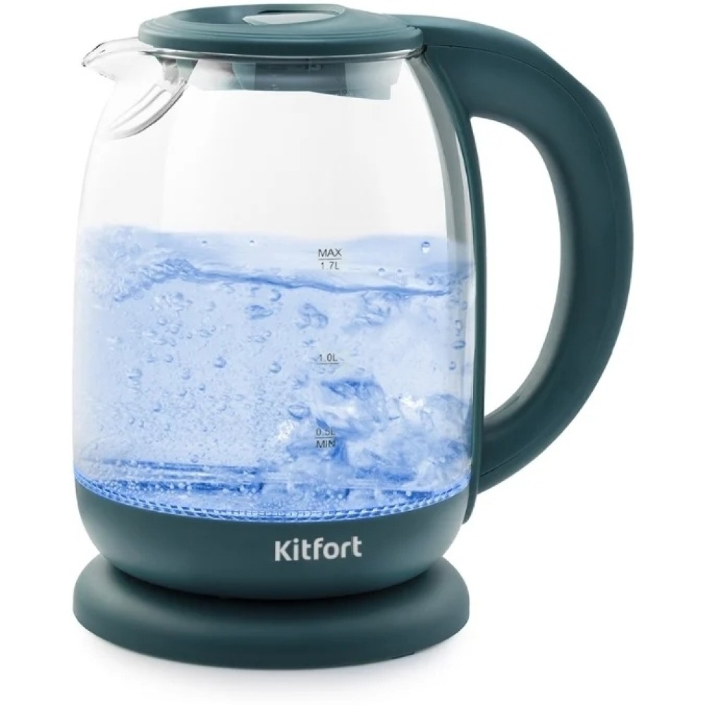 Прибор Kitfort KT-640-4 дополнен рабочей индикацией, подсветкой с пятью цветами, фильтром в носике и терморегулятором. При автоотключении и закипании срабатывает звуковое оповещение. Также имеется защита от случайного включения чайника без воды.