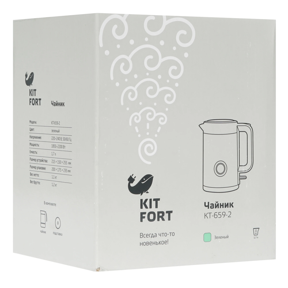 Электрочайник Kitfort КТ-659-2 привлекает к себе внимание приятным светло-зеленым оформлением и наличием встроенного термометра, при помощи которого можно отслеживать температуру воды в реальном времени. В чайнике установлен долговечный нагревательный элемент, а объем составляет 1.7 л. Съемный нейлоновый фильтр в носике предотвращает попадание накипи в чашку.
