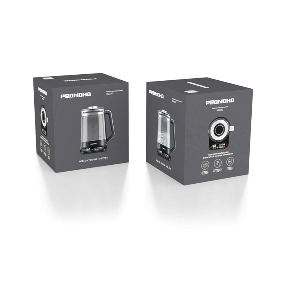 Redmond KG220 - чайник объемом 1,7 литра с сенсорным управлением и 5 автоматическими режимами для заваривания разных сортов чая: 70, 80, 85, 90, 93 °C. Крышка полностью съемная и не будет мешать, когда вы наливаете воду. Контроллер Striх® от британского производителя прослужит более 10 лет без поломок. Панель управления можно заблокировать, а функция поддержания температуры до 12 часов позволит не кипятить воду несколько раз в день.