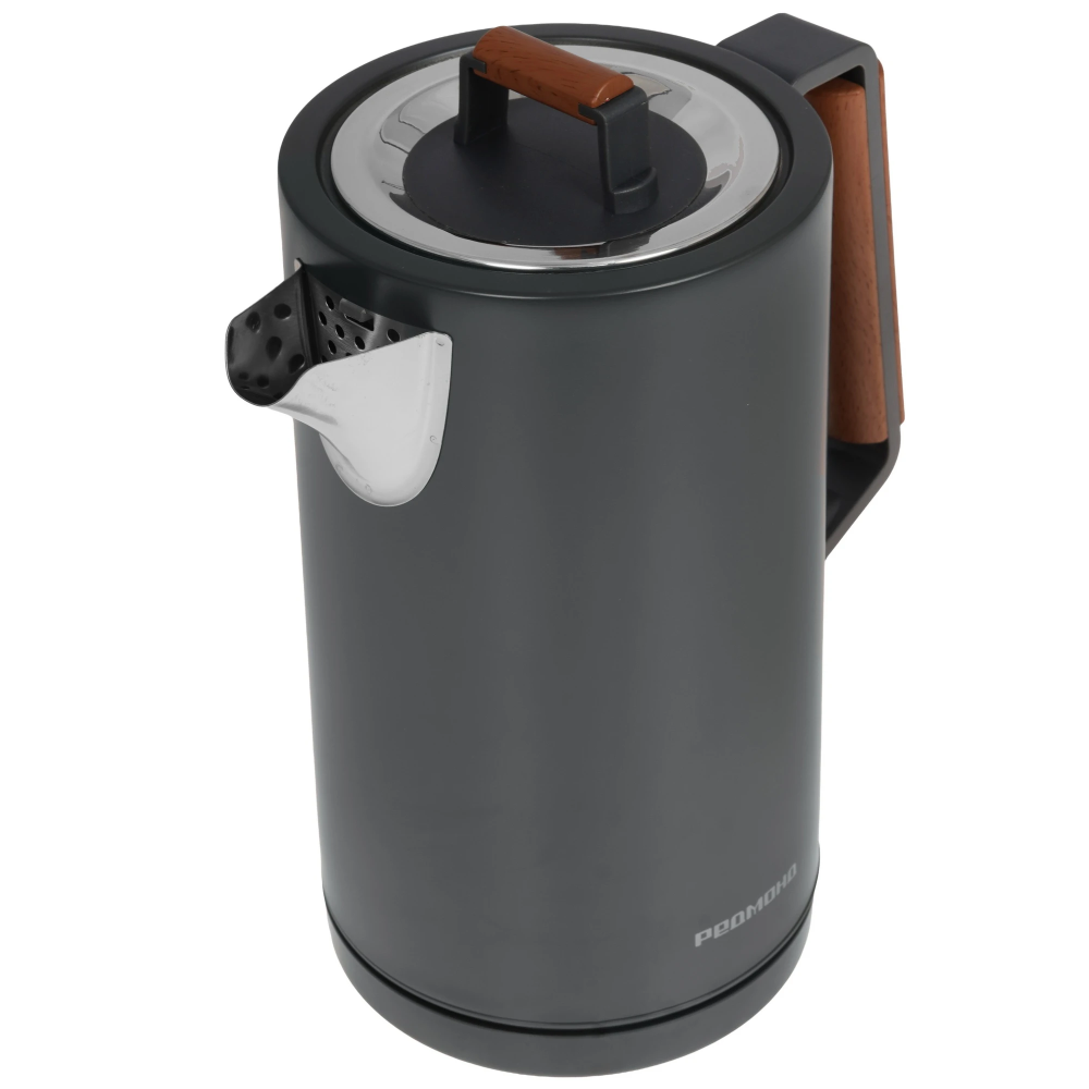 Стильное и надежное устройство для кипячения воды. Металлический корпус обеспечивает прочность прибора, а контактная группа Strix и съемный фильтр от накипи — его долговечность. Чайник прослужит вам более 10 лет. Уход не займет много времени: бытовой прибор можно быстро наполнить и помыть благодаря съемной крышке.