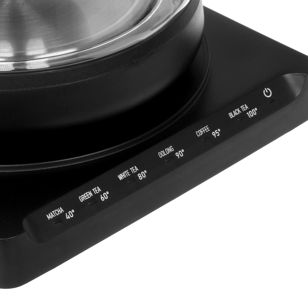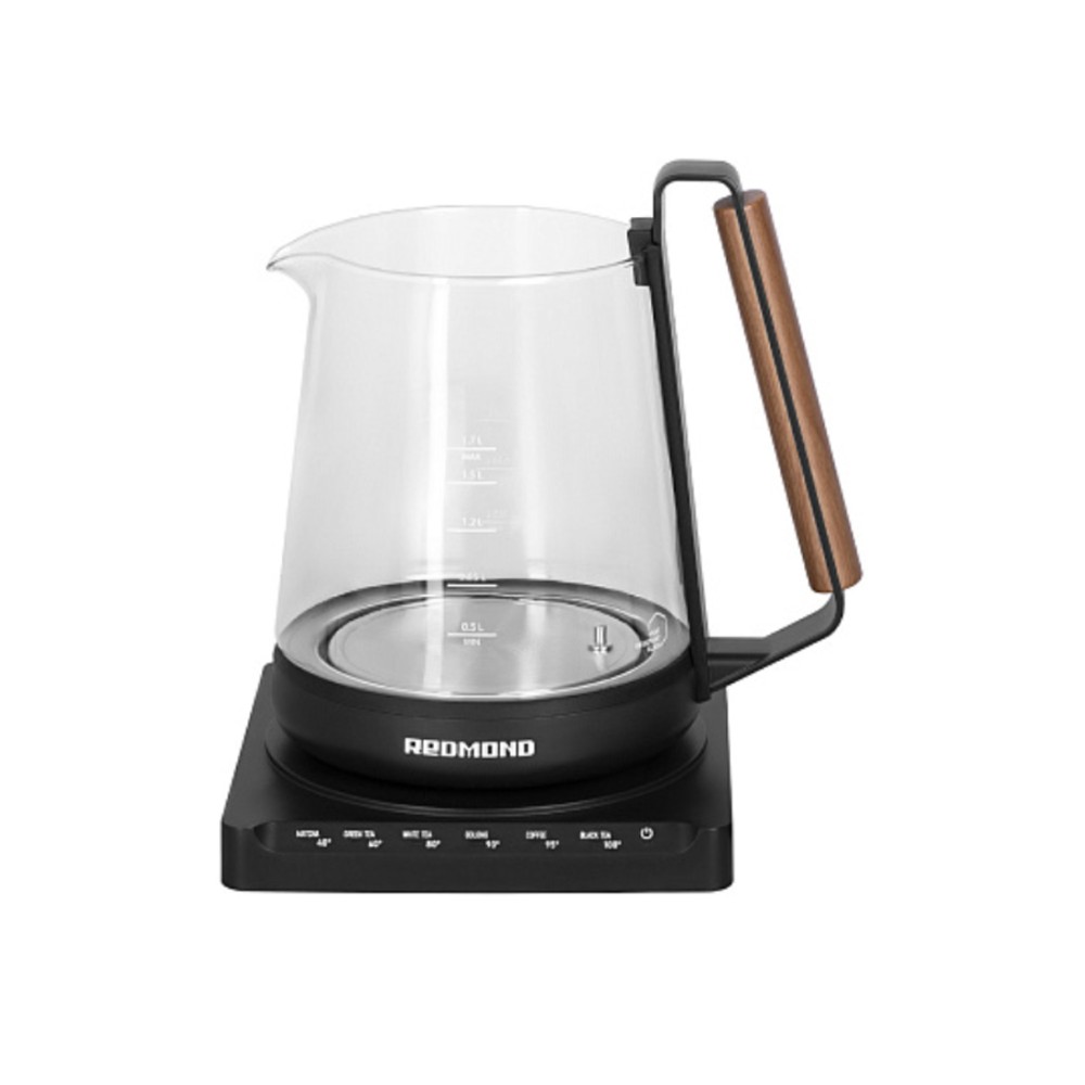 Прибор Redmond RK-G1308D поддерживает температуру до двух часов и позволяет выбрать уровень нагрева от 40°C до 100°C. Благодаря скрытому нагревателю вы легко очистите емкость от накипи. Чайник сам отключается при закипании и не включается без воды. Подставка с электронным управлением дополнена нишей для намотки шнура.