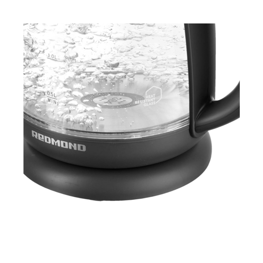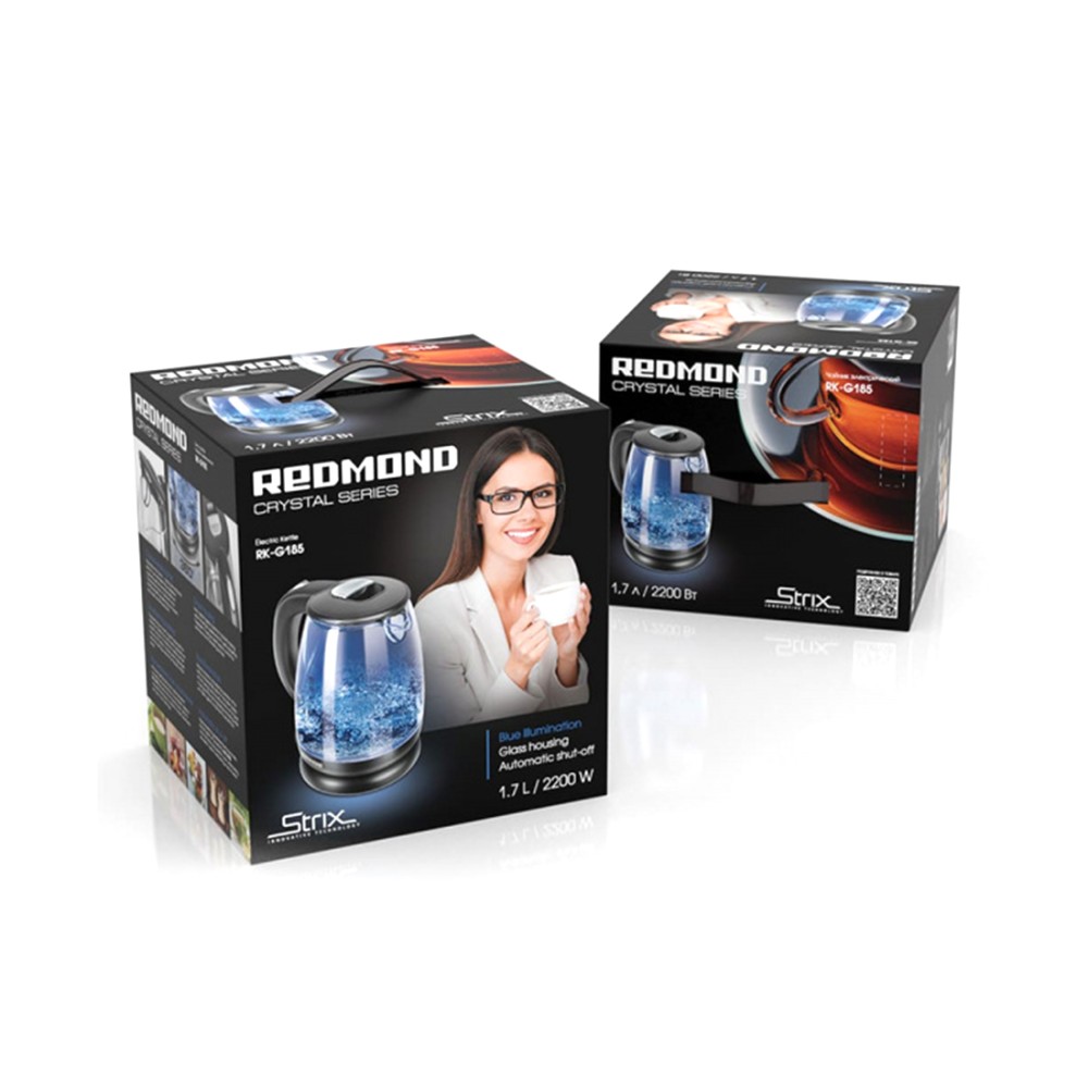 Шкала с индикатором уровня воды, а также индикатор работы делают эксплуатацию модели удобной. Этому же способствует возможность вращения чайника Redmond RK-G185 на подставке. Сетевой шнур длиной 0.7 м может храниться в специальном отсеке при необходимости. За безопасность эксплуатации модели отвечают опция автоотключения и деактивация при отсутствии воды.