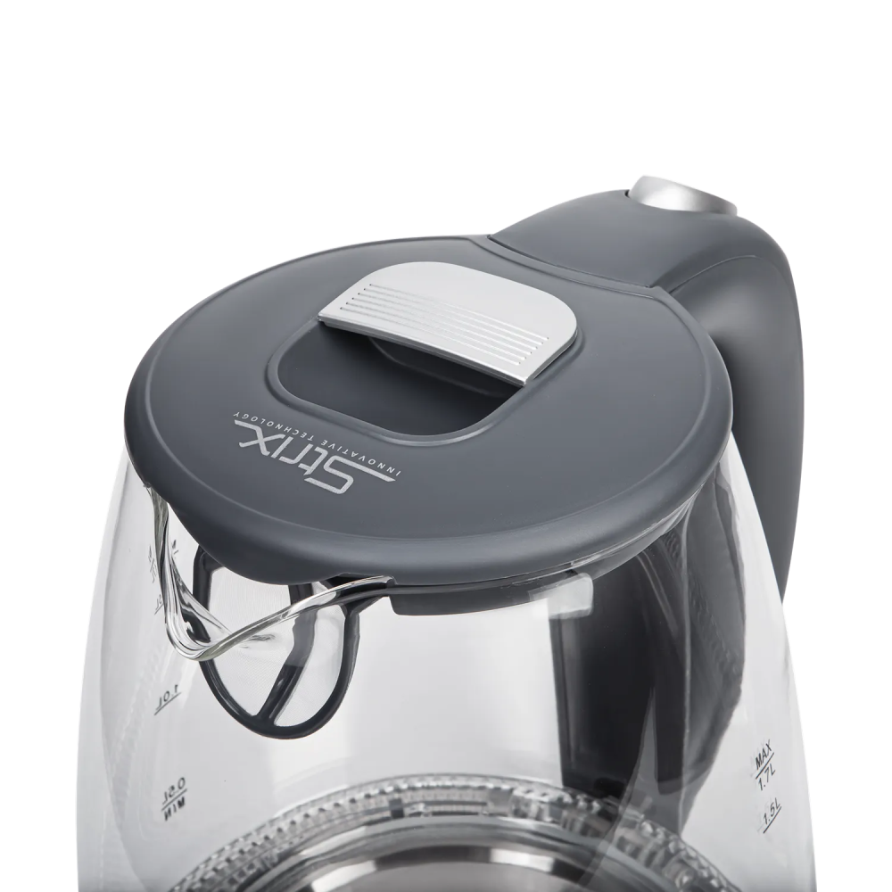 Электрочайник Redmond RK-G185 обладает симпатичным корпусом из прозрачного термостойкого стекла объемом 1.7 л. Модель оснащена подсветкой, за счет чего чайник особенно эффектно смотрится в сумерках или в темноте. Декоративные вставки и удобная эргономичная ручка выполнены из серого пластика. За счет мощности 2200 Вт и дискового нагревателя из нержавеющей стали вода кипятится очень быстро. В конструкции носика чайника также предусмотрен нейлоновый фильтр.