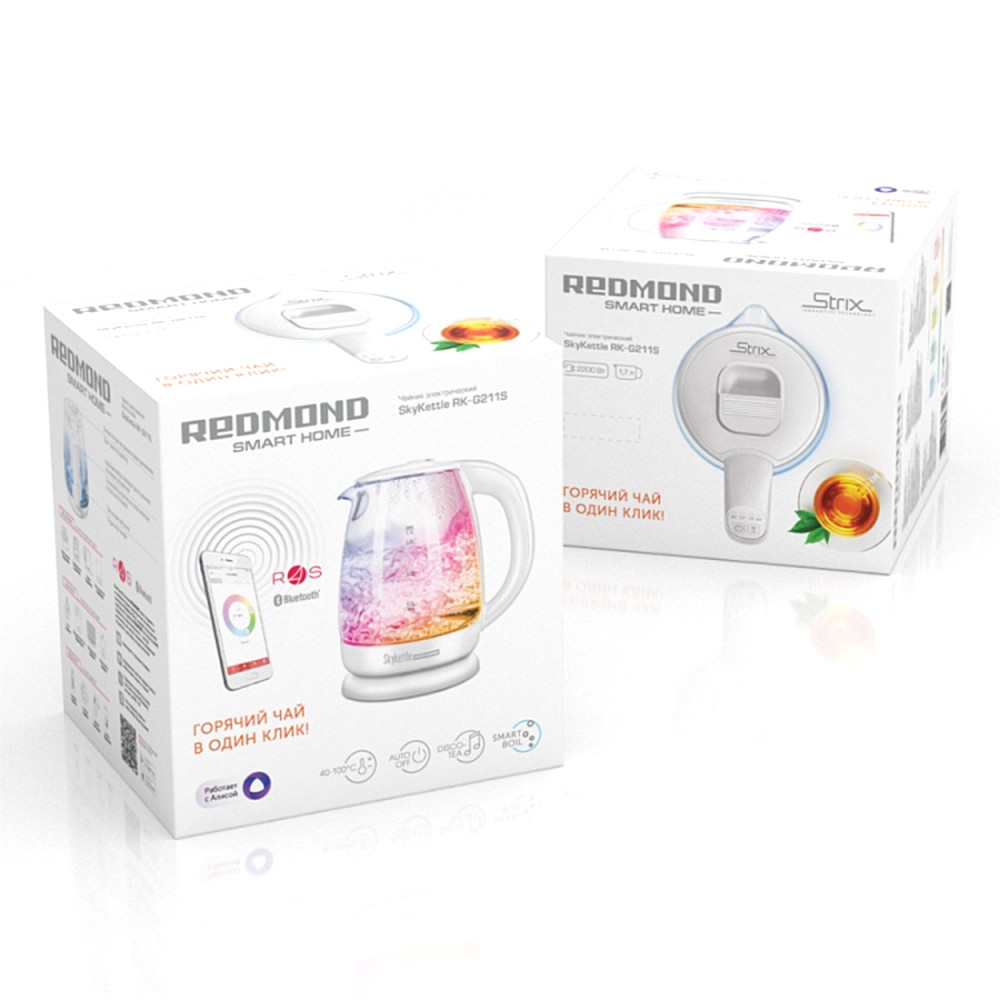 В электрочайнике Redmond SkyKettle RK-G211S предусмотрена функция Smart Boil. Вы сможете настроить интенсивность кипения воды при помощи вашего смартфона через специальное приложение. Благодаря этой функции вы сможете избежать обильного парообразования и добиться наиболее оптимального для вас уровня минерализации кипяченной воды. Также при помощи приложения вы сможете отрегулировать подсветку прибора: настроить яркость, режим свечения и цвет. Установите расписание работы прибора, и к завтраку вас будет ждать вскипяченная вода.