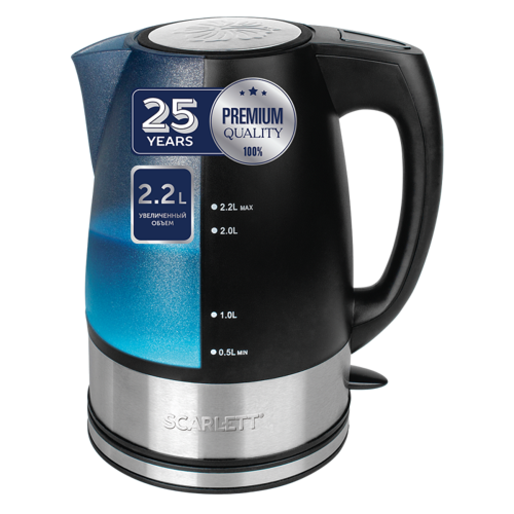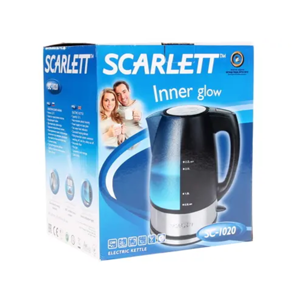 Электрочайник Scarlett SC-1020 Barbara объемом воды на 2.2 литра просто создан для большой компании. Потребляемая мощность электроприбора при нагревании составляет 2.2 кВт. Классический черный корпус электроприбора создан из высококачественного термопластика по последним научно-техническим разработкам и является экологически чистым. Его можно рекомендовать для использования в домах, где растут дети.