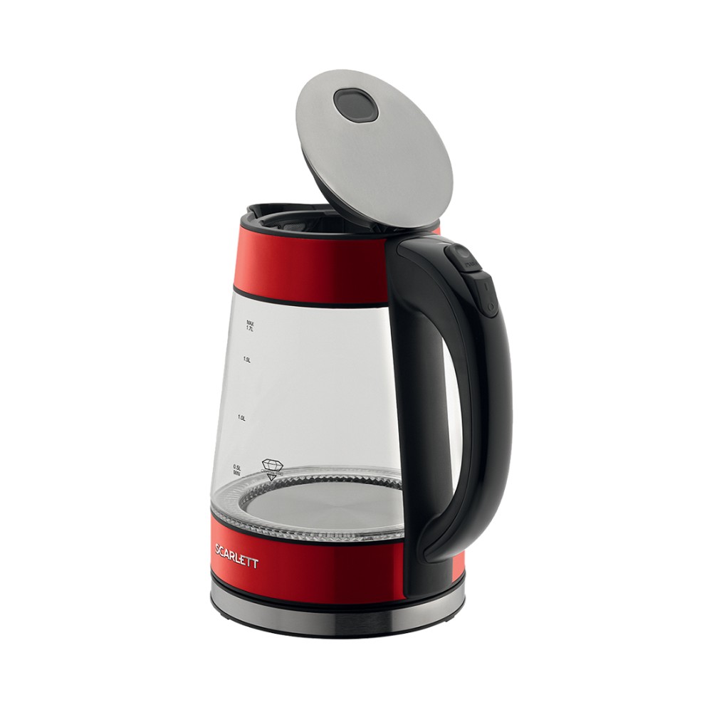 Электрочайник Scarlett SC-EK27G79 выполнен в корпусе из прозрачного термостойкого стекла и дополнен пластиковыми декоративными накладками красного цвета. Дисковый нагревательный элемент мощностью 2200 Вт обеспечивает весьма быстрое кипячение воды и характеризуется длительным сроком службы. Сетчатый фильтр в носике, выполненный из нейлона, предотвращает попадание накипи в чашку. Для удобства в использовании чайник оснащен шкалой уровня воды и приятной голубой подсветкой. В свою очередь, комплексная система с технологиями автоматического отключения при закипании, защиты от включения без воды и защиты от перегрева повышает безопасность в эксплуатации чайника Scarlett SC-EK27G79.