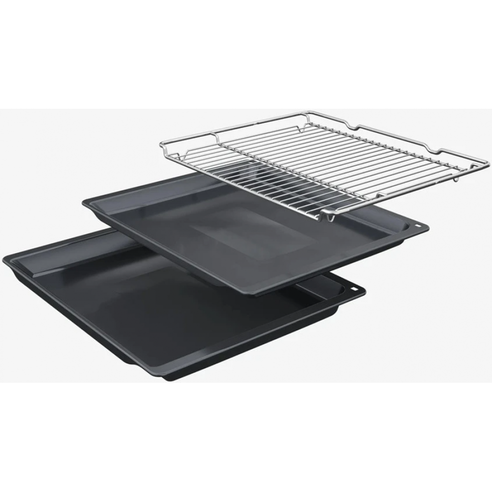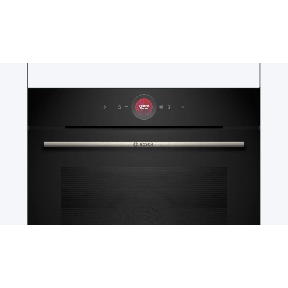 Духовой шкаф Bosch HBG7341B1 из серии Serie | 8 - это превосходный выбор для тех, кто ценит качество, функциональность и стиль. Объем шкафа составляет 71 литр, что позволяет приготовить большое количество блюд одновременно. Кроме того, шкаф оснащен 14 режимами нагрева, включая 3D-горячий воздух, горячий воздух Gentle, горячий воздух ECO, верхний/нижний жар, большой гриль, гриль с конвекцией, режим для пиццы, нижний жар, поддержание температуры и размораживание. Это обеспечивает гибкость при выборе метода приготовления и позволяет достичь идеального результата. Управление шкафом осуществляется с помощью сенсорных элементов и 2.5-дюймового цветного TFT-дисплея. Это обеспечивает удобство и интуитивность использования. Кроме того, шкаф оснащен функцией Home Connect, которая позволяет управлять им с помощью смартфона или планшета. Особенностью шкафа является система очистки EcoClean, которая облегчает процесс уборки после приготовления пищи. Дверца шкафа оснащена амортизатором SoftOpen, который обеспечивает плавное и тихое открывание и закрывание.