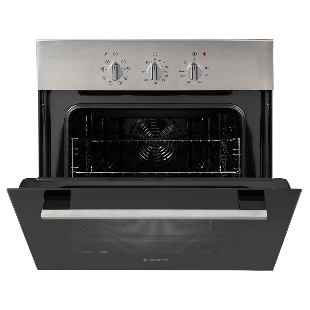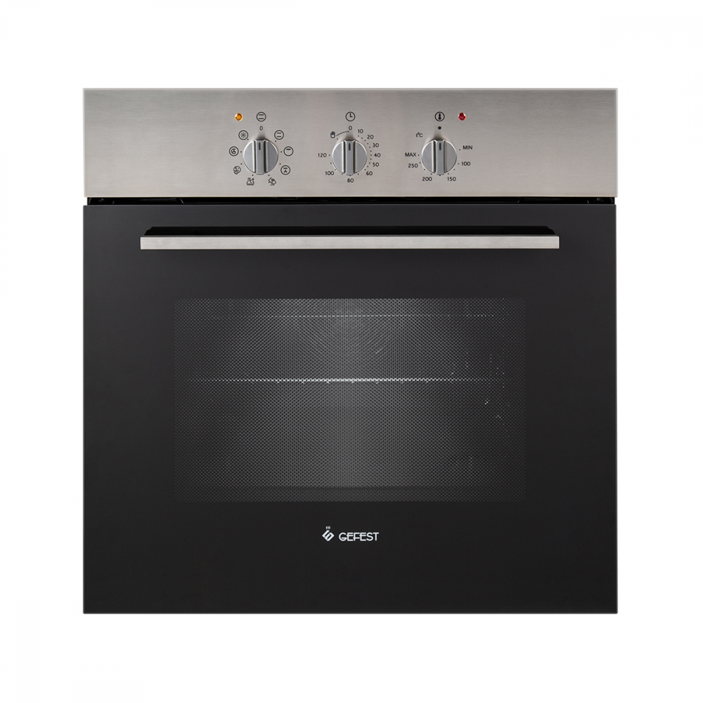 Время готовки задается при помощи электромеханического таймера. Контроль запекания можно производить визуально, пространство Gefest 602-01 Н1М обеспечено одинарной подсветкой. Для противня и решетки предусмотрены хромированные проволочные направляющие, которые позволяют удобно производить уход за духовкой.