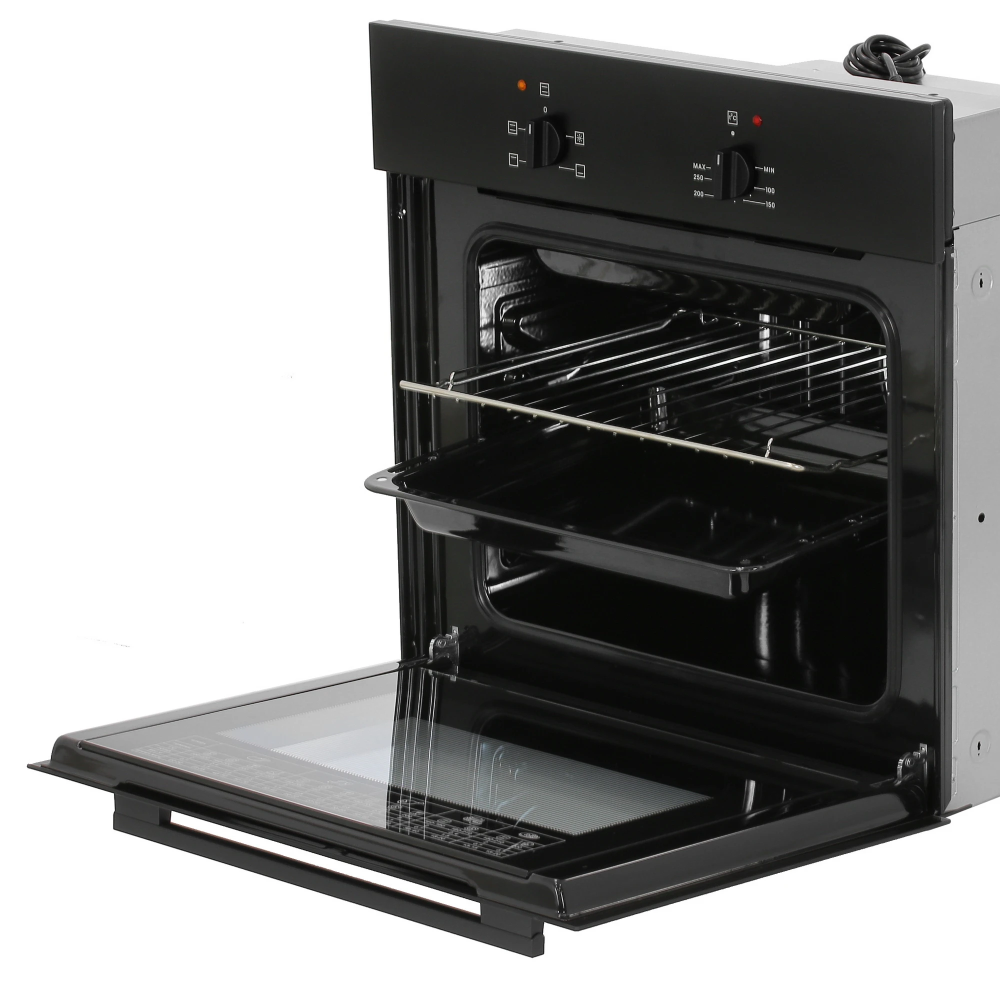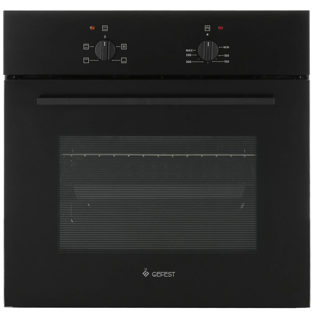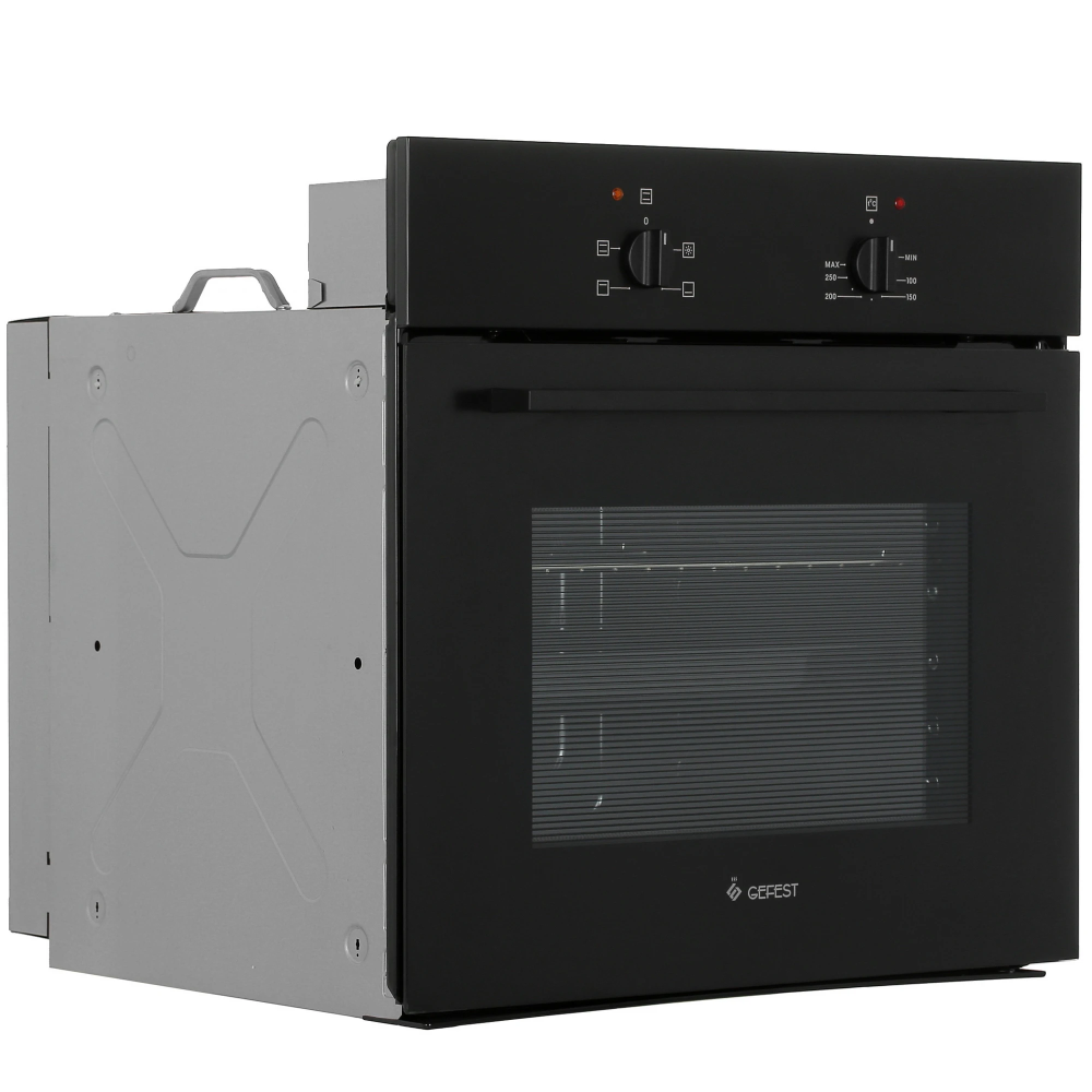 На панели управления расположены поворотные механические регуляторы и световые индикаторы состояния. Подсветка равномерно освещает внутреннее пространство и обеспечивает визуальный контроль степени готовности блюд. Съемное стекло на дверце упрощает очистку духового шкафа Gefest ДА 602 К2.