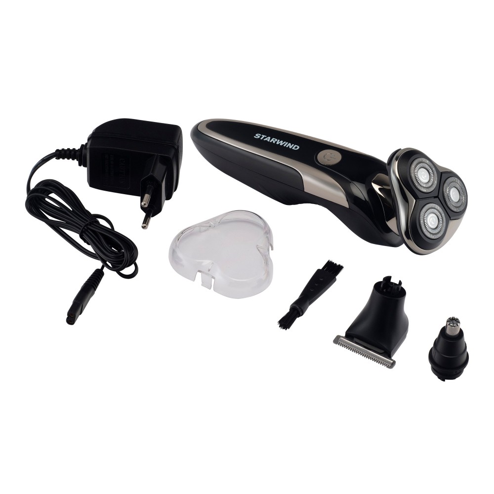 Электробритва Starwind SSH 4040 предназначена для сухого и влажного бритья. Благодаря трем плавающим головкам она способна сделать процесс бритья гладким и комфортным без раздражения чувствительной кожи лица. В конструкции дополнительно предусмотрен триммер для подравнивания и придания необходимой формы. Встроенный аккумулятор гарантирует в пределах 45 минут автономной работы бритвы Starwind SSH 4040. В комплекте поставляются защитная крышка на режущий блок, адаптер зарядки и щеточка для очистки.
