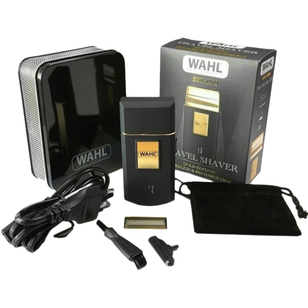 Wahl 07057-016 Travel Shaver — это компактная мужская электробритва с фольгированной системой сухого бритья, идеально подходящая для поездок. Устройство оснащено аккумулятором с автономной работой до 45 минут, заряжается за 8 часов и работает от мощного моторчика с частотой около 6000 об/мин. Бритва имеет стильный чёрно-золотой корпус с резиновым покрытием для удобного хвата, LED-индикатор зарядки и идёт в комплекте с запасной сеткой и лезвием, щёткой для чистки, чехлом и металлическим кейсом для хранения.