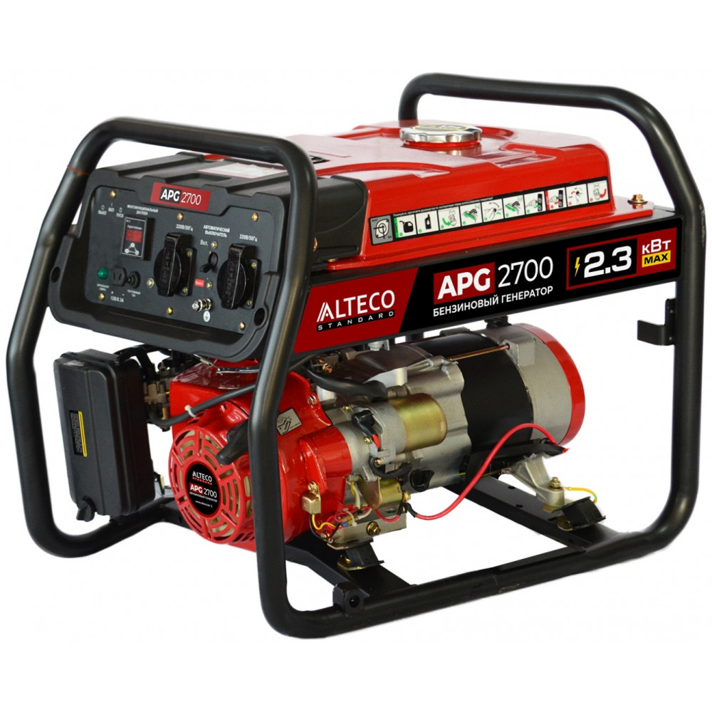 Бензиновый генератор ALTECO APG 2700 - создан для аварийного и автономного электропитания. С ним любые внештатные ситуации пройдут гладко. И свет будет даже там, где электричества никогда не было! Номинальная мощность 2 кВт позволяет снабжать энергией маломощные бытовые приборы и строительные инструменты. Особенности ALTECO APG 2700: устойчивость к механическим повреждениям - металлическая силовая рама надежно защищает оборудование от механических повреждений. Защита от пыли и влаги - пластиковые крышки позволяют исключить попадание влаги и пыли на контакты розеток. Минимум вибраций - все узлы генератора устанавливаются на демпферную систему, что гарантирует минимум вибраций во время работы. Повышенный рабочий ресурс - устройство оснащено производительным бензиновым двигателем с повышенным моторесурсом. Легкая замена воздушного фильтра - легкий доступ к воздушному фильтру возможен благодаря быстросъемной крышке.