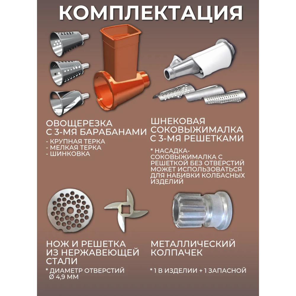 Аксион М61.02 — мощная и надёжная электромясорубка для домашнего использования. Оснащена функцией реверса, двумя решётками, насадкой для приготовления колбас и металлическим шнеком. Корпус выполнен в чёрно-серебристом цвете, устойчивая конструкция и высокая производительность.