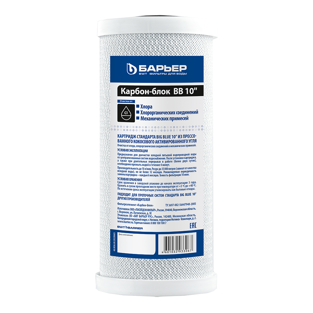 Картридж «Карбон-блок» предназначен для доочистки воды от хлора, хлорорганики и фенольных соединений. Картридж совместим с любыми системами стандарта Big Blue 10.