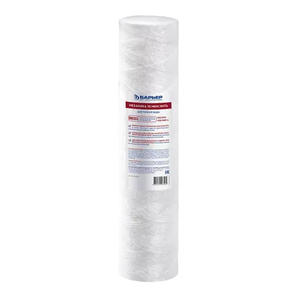 Технические характеристики Фильтроэлемент Барьер Механика 10 мкм нить BB20 для горячей воды Р511Р09