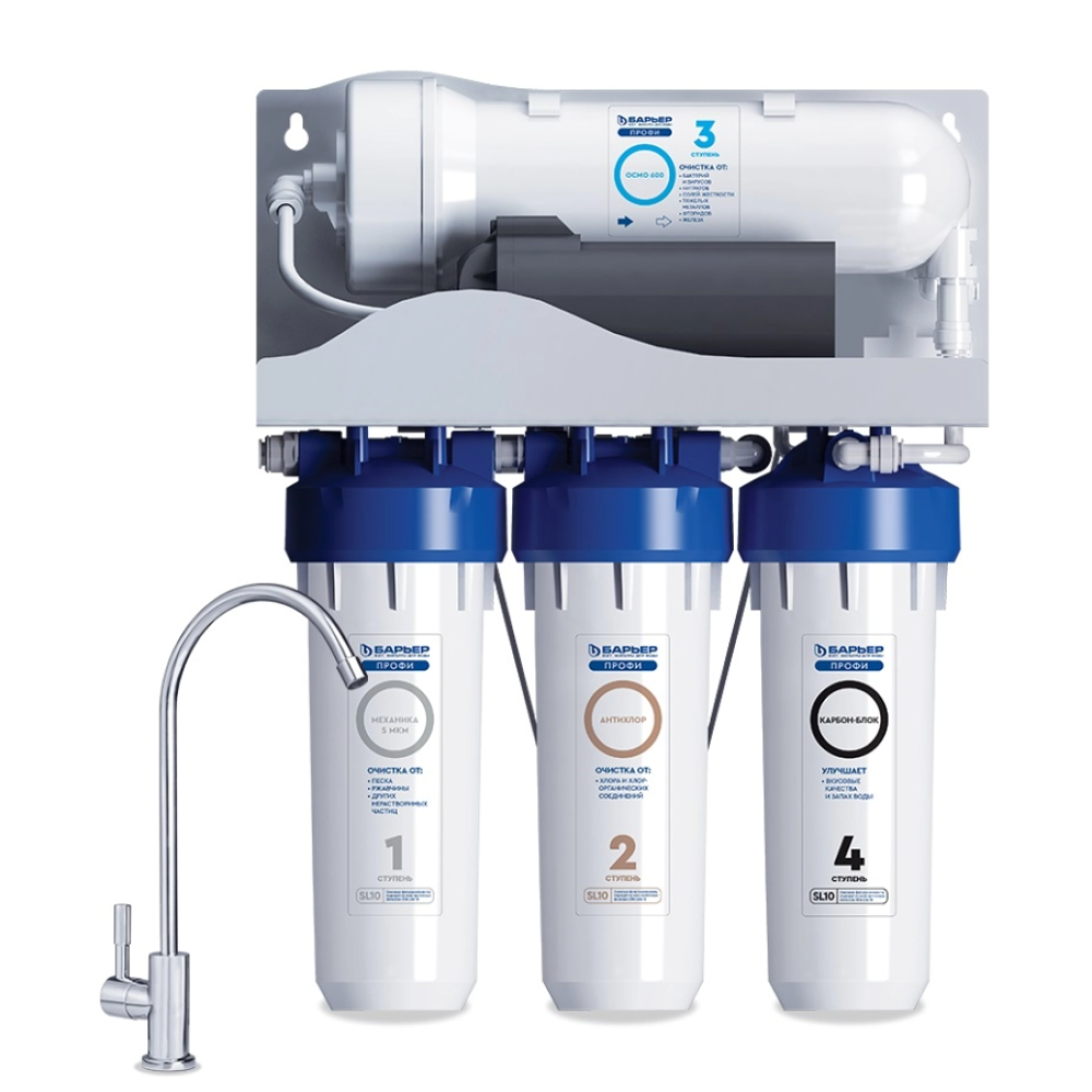 2 ступень — БАРЬЕР ПРОФИ Антихлор. Безупречная очистку от хлора и хлорорганики, фенольных соединений, дополнительная механическая очистка перед мембраной.