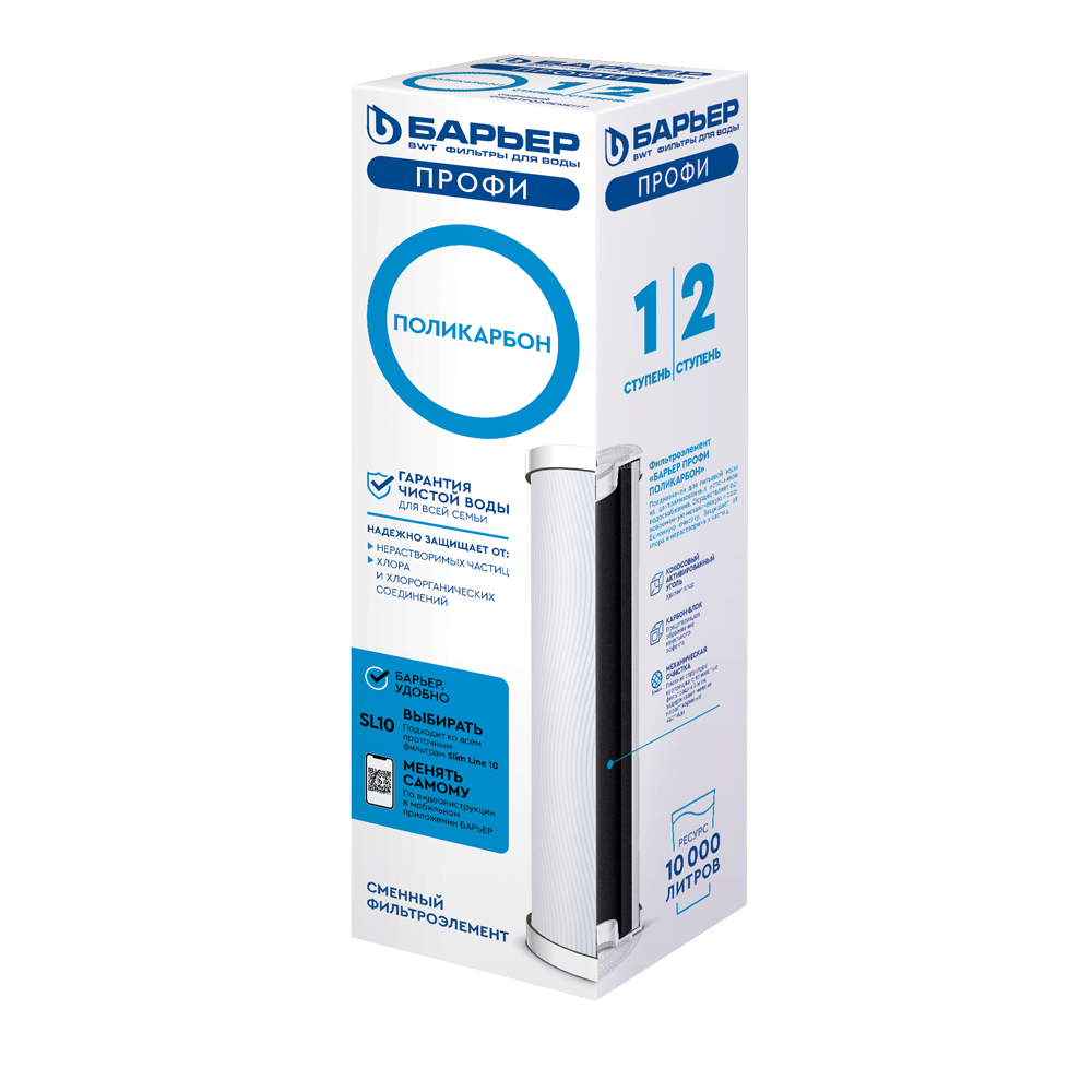 Сменный картридж БАРЬЕР ПРОФИ Поликарбон подходит к любой проточной системе БАРЬЕР ПРОФИ, а также к системам других производителей при условии фактического соответствия универсальному стандарту SL10.