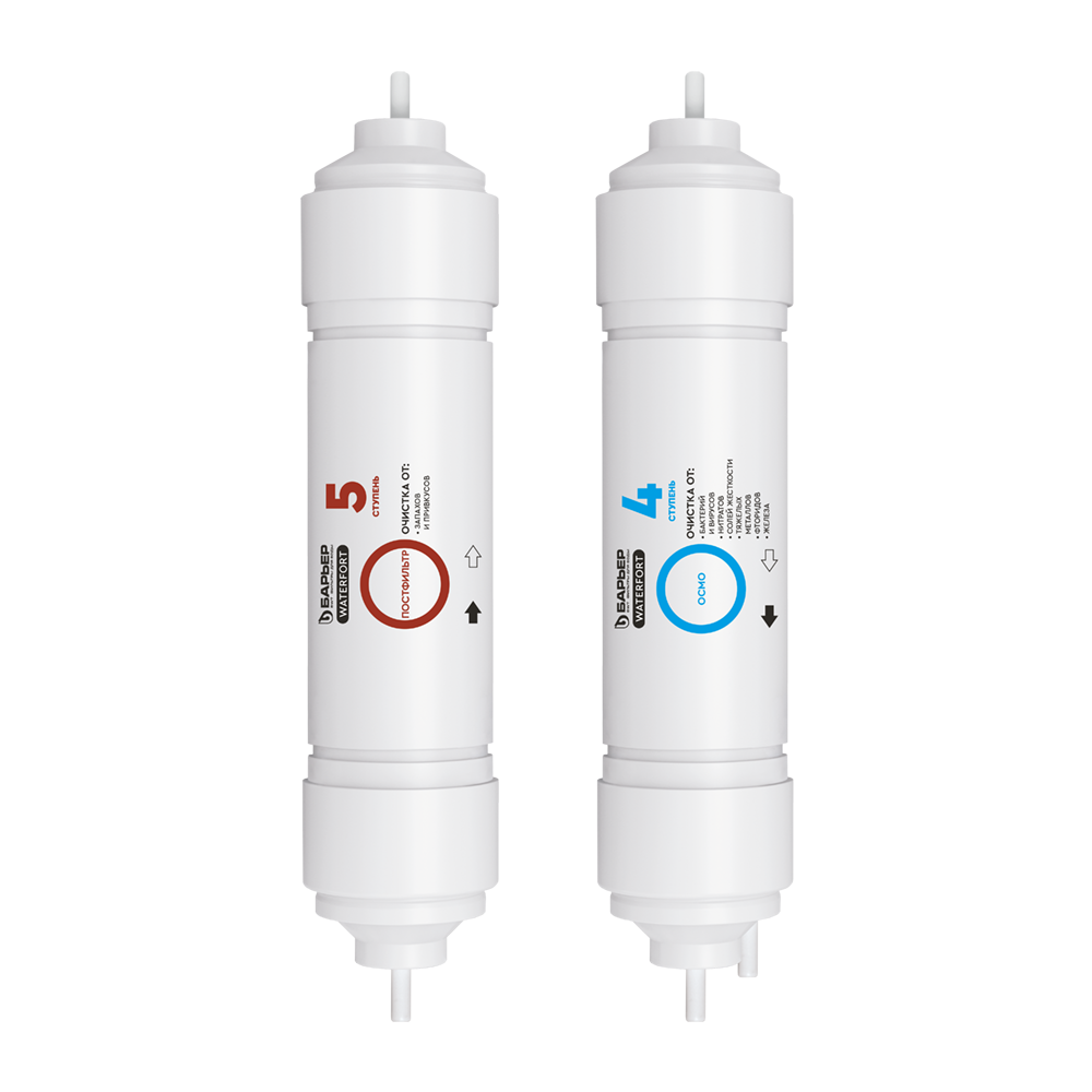 5 ступень — БАРЬЕР WaterFort Постфильтр. Кондиционирование воды и дополнительная очистка после накопительной емкости. Устраняет неприятные запахи и привкусы. В случае использования минерализатора, может быть установлен в качестве 6 ступени. Рекомендуемая периодичность замены — раз в 12 месяцев.