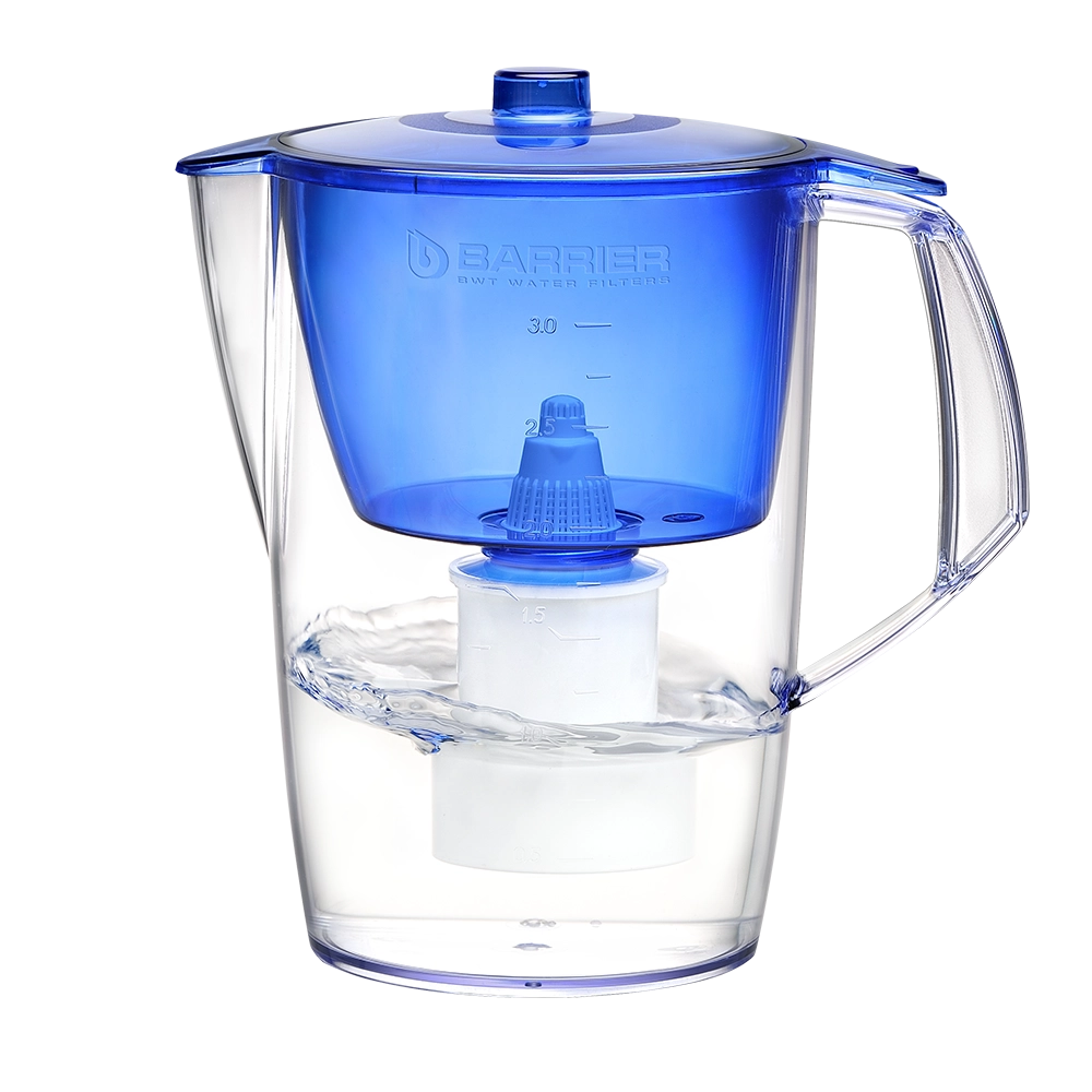 Фильтр-кувшин БАРЬЕР Лайт синий — компактный и удобный фильтр для очистки питьевой воды. Обеспечивает эффективное удаление хлора, механических примесей и неприятных запахов, улучшая вкус и качество воды. Корпус и воронка изготовлены из пищевого пластика, безопасного для здоровья. Оснащён механическим индикатором ресурса картриджа, который сигнализирует о необходимости замены фильтра. Максимальная температура воды — 40 °C. Объем очищенной воды составляет около 1.5 литров. Откидная крышка облегчает процесс наполнения кувшина.