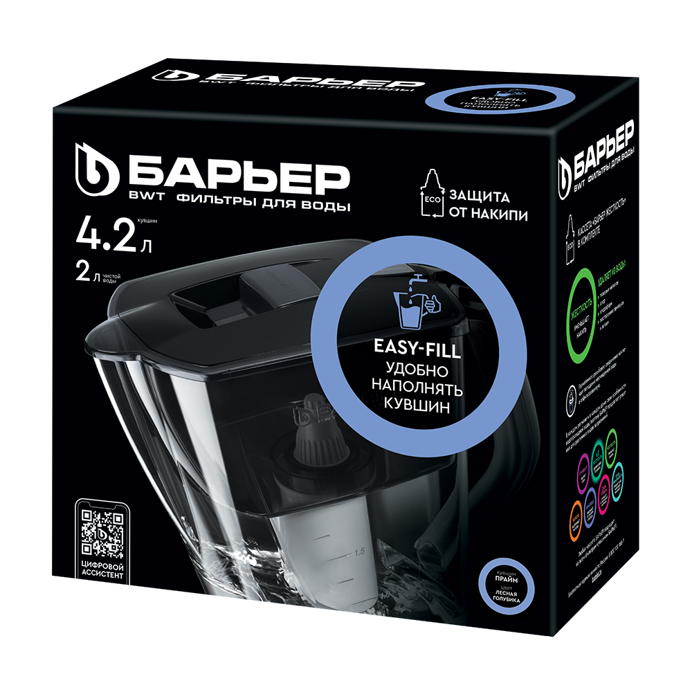 Фильтр-кувшин БАРЬЕР Прайм (лесная голубика) В55СР00 — это стильная и компактная модель с эргономичным дизайном, выполненная в насыщенном синем цвете.