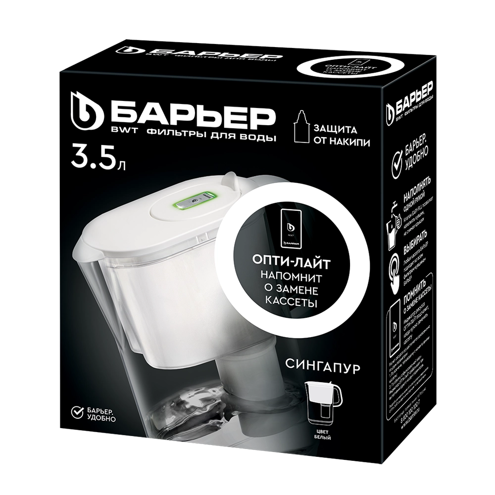 Фильтр-кувшин для очистки воды "БАРЬЕР Стайл XL" ("Сингапур") – надежное и стильное решение для чистой и вкусной воды в вашем доме!
