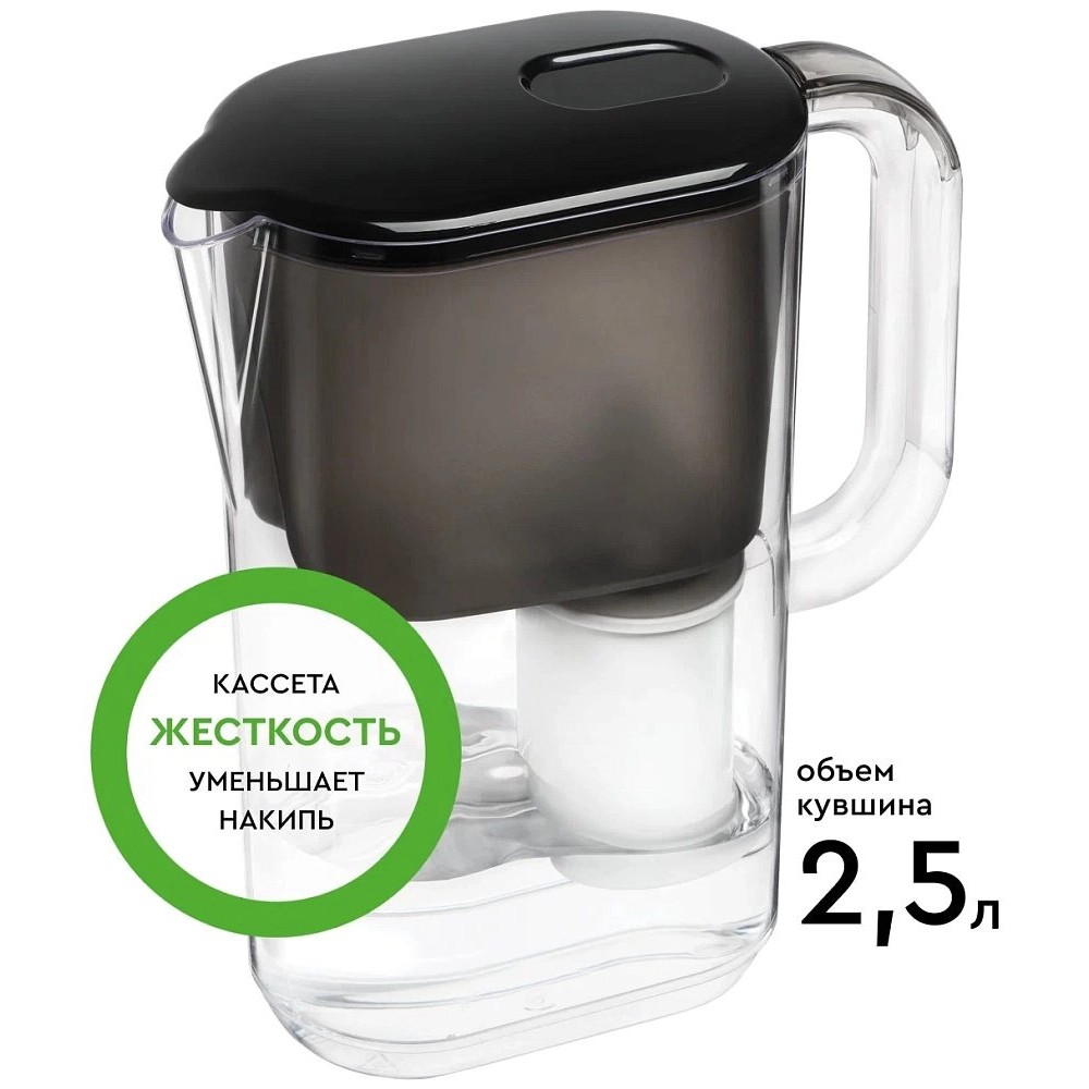 Фильтр-кувшин для очистки воды "БАРЬЕР Стайл XS" в стильном черном корпусе с дизайном "Аляска". Компактный и удобный фильтр-кувшин изготовлен из лёгкого и прочного пищевого пластика с материалом Опти-Лайт, который обеспечивает долговечность и эргономичность. Эффективно очищает воду от хлора, механических примесей, неприятных запахов и снижает жёсткость воды. Оснащён механическим индикатором ресурса для своевременной замены картриджа. Идеален для использования дома и в офисе, экономит место на кухне.