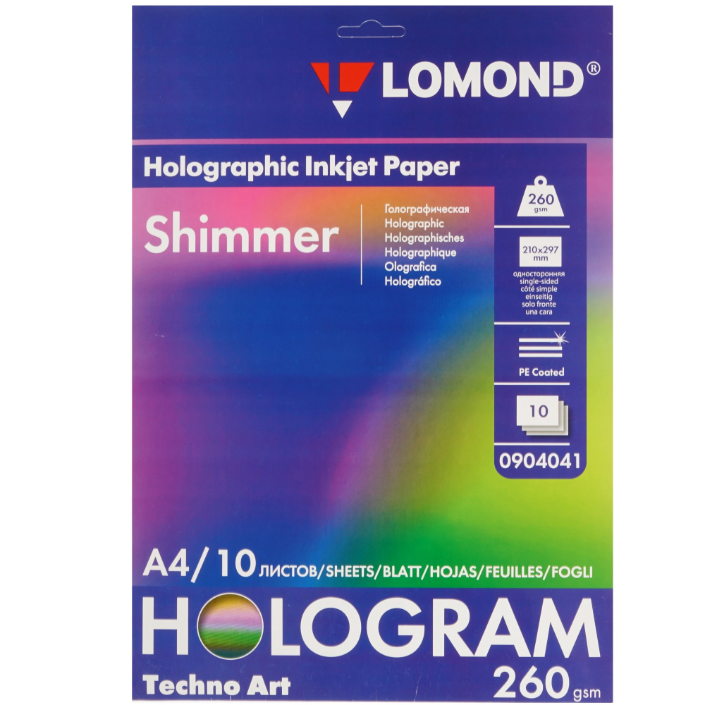 Фотобумага Lomond 0904041 выделяется стильным голографическим эффектом "Shimmer" и двусторонней полимерной поверхностью. Данный материал позволяет создавать детализированные изображения с высокими показателями контрастности. Фотобумага характеризуется плотностью 260 г/м² и поставляется в упаковке из 10 листов формата А4. Микропористая структура обеспечивает быстрое высыхание чернил и устойчивость к негативным воздействиям окружающей среды. Фотобумага Lomond 0904041 может использоваться на струйных принтерах с чернилами на водорастворимой или пигментной основе.