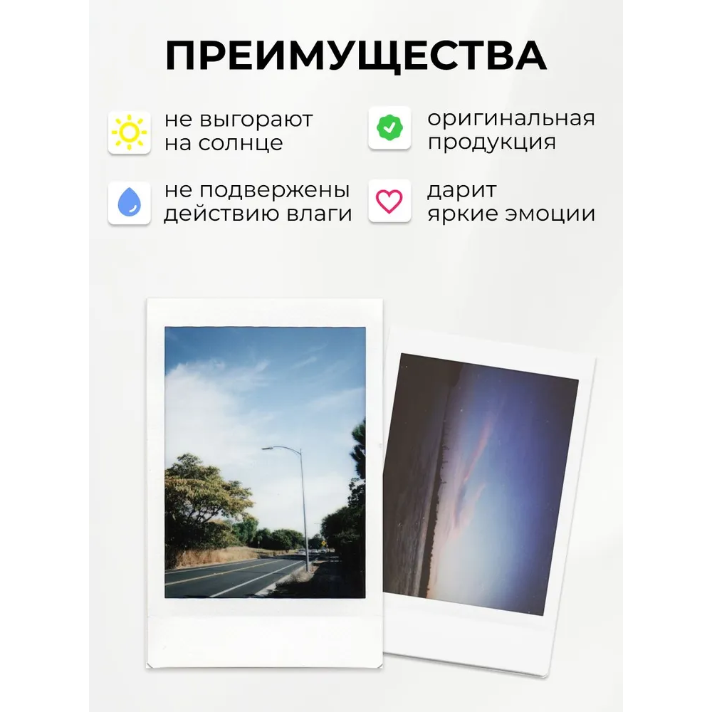 Также совместим с камерами моментальной печати Fujifilm Instax Mini, камерой Polaroid PIC300, принтером Fujifilm Instax SHARE SP-1, Fujifilm Instax SHARE SP-2, камерой Leica Sofort и фотокамерами LomoInstant Mini.
