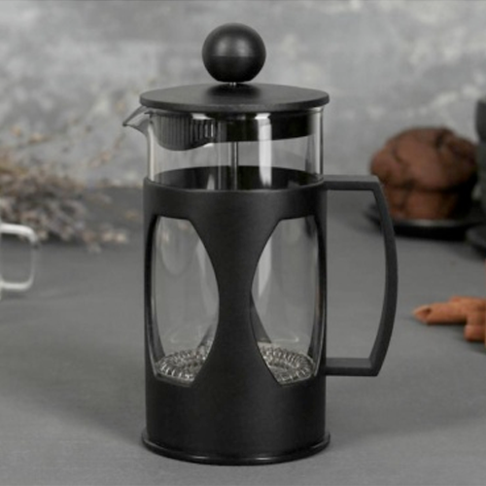 Она заключена в стильный черный корпус и имеет ручку, за которую удобно держать френч-пресс. Оригинальный внешний вид изделия украсит интерьер современной кухни.Форма носика идеальна для наливания напитков и препятствует образованию подтеков. Пресс-фильтр из нержавеющей стали с уплотнительным кольцом. Благодаря прозрачным стенкам вы сможете определить крепость заваренного напитка. Кроме того, данная модель оснащена ненагревающейся ручкой, что обеспечивает удобство и безопасность использования. Френч-пресс упакован в подарочную коробку.