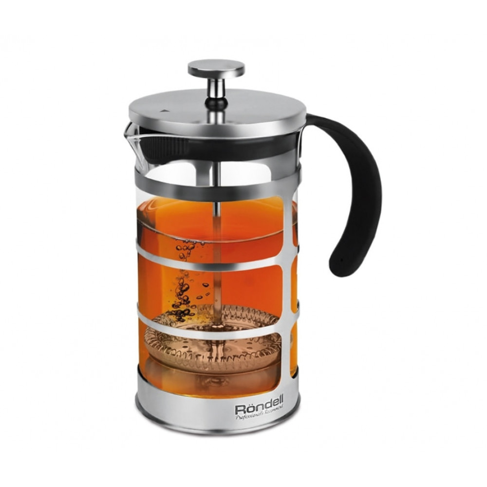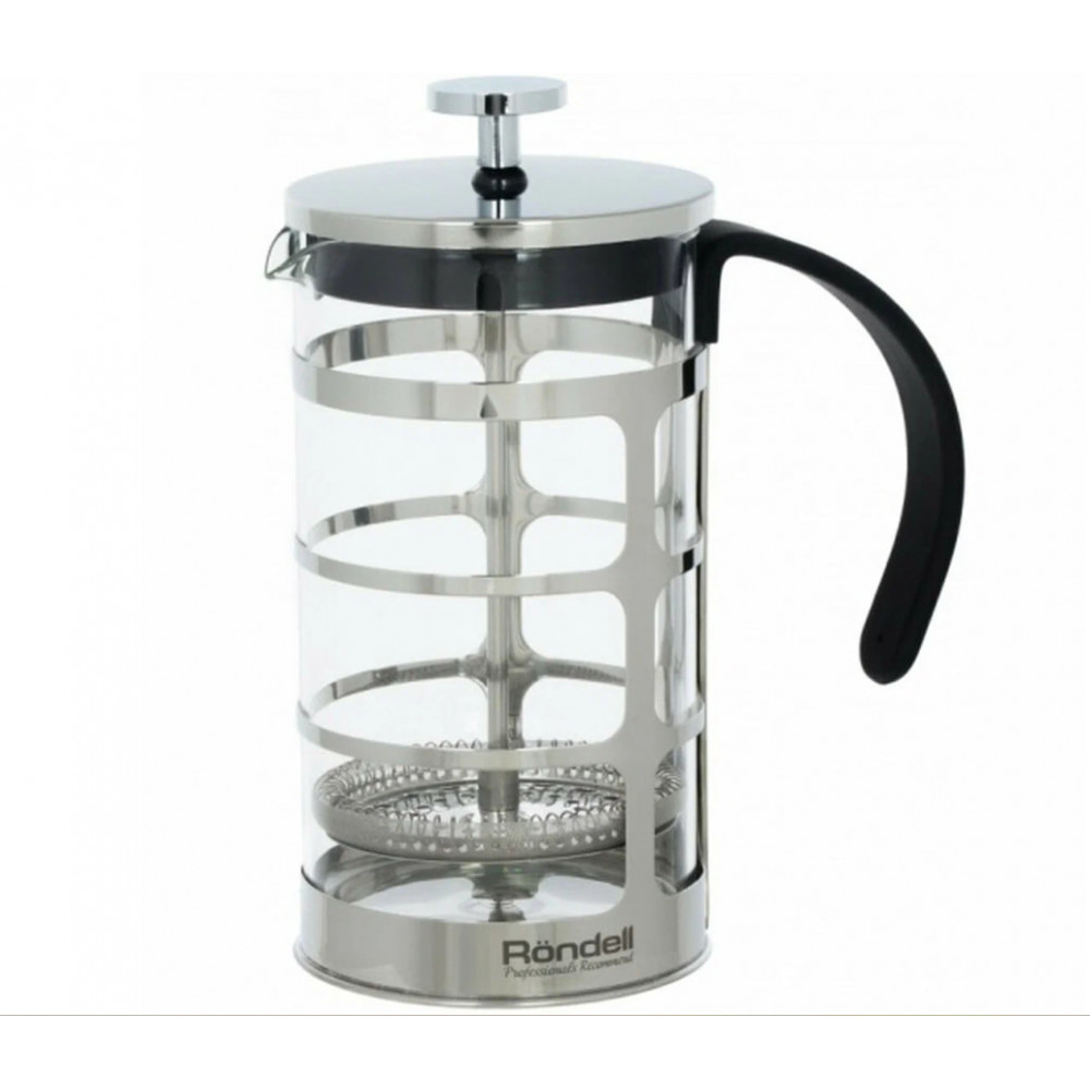 Френч-пресс Rondell Bond RDS-708 — стильное и удобное приспособление для заваривания кофе или чая объемом 600 мл. Колба выполнена из прочного жаростойкого стекла, устойчивого к перепадам температур, а корпус и поршень изготовлены из нержавеющей стали, что обеспечивает долговечность и надежность конструкции. Эргономичная черная ручка и металлические элементы в серебристом цвете придают изделию современный и элегантный вид. Френч-пресс Rondell Bond RDS-708 отлично подойдет для домашнего использования или офиса, позволяя быстро приготовить ароматный напиток с насыщенным вкусом.