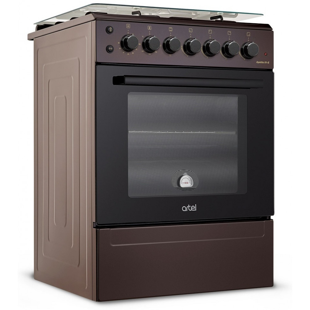 Плита ARTEL APETITO 01-E оснащена варочной поверхностью с 4 газовыми конфорками разной мощности с электроподжигом кнопкой. Различный размер конфорок обеспечит разную мощность подачи газа. Плита обладает просторным электрическим духовым шкафом объемом 65 литров, в котором встроено яркое освещение. Плита имеет стеклянную крышку, которая защитит кухонную стену от брызг жира.