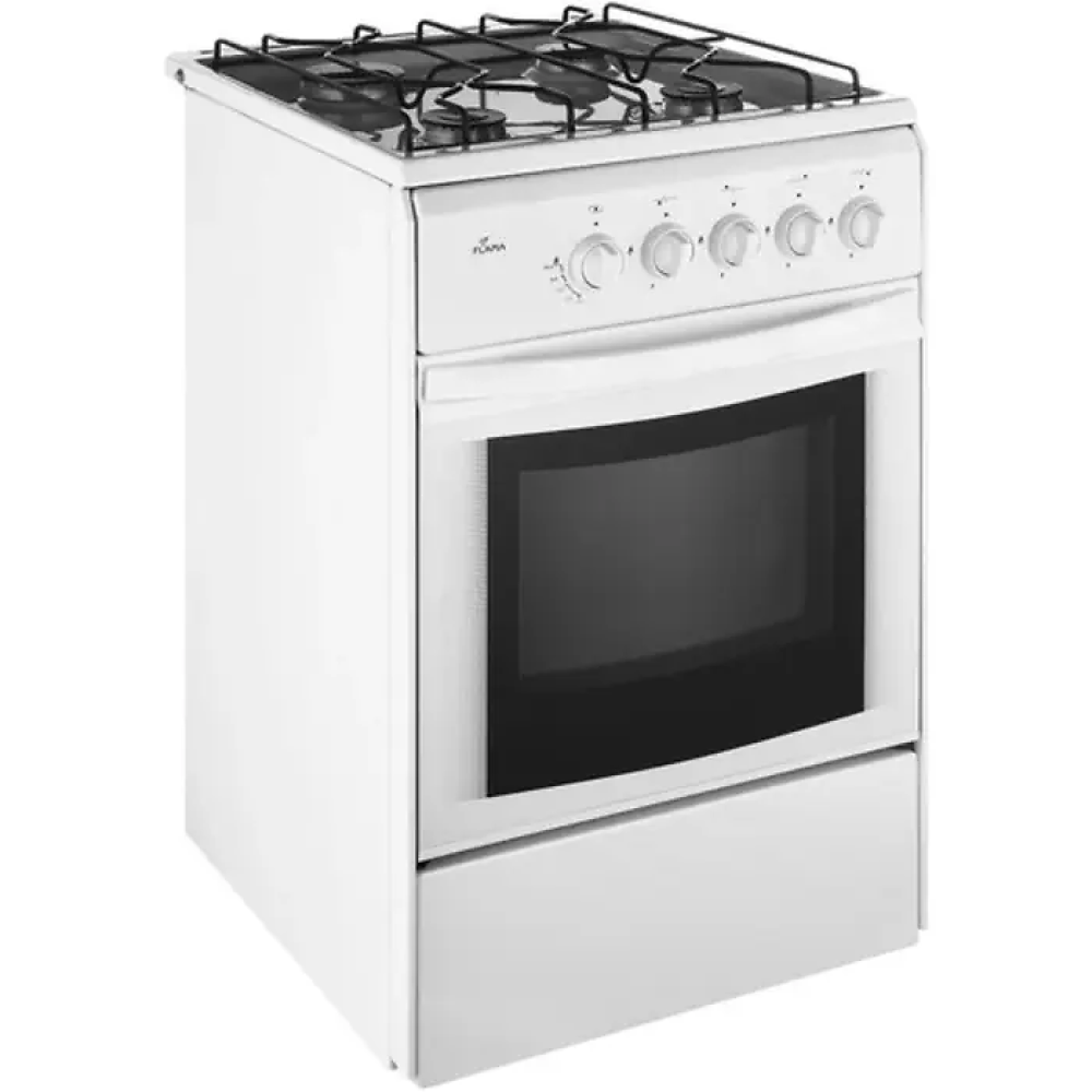 FLAMA RG 24019 – простая, но функциональная отдельностоящая газовая плита. Модель исполнена в белом цвете и декорирована черными элементами, что делает ее подходящей для расположения практически во всех кухнях.
