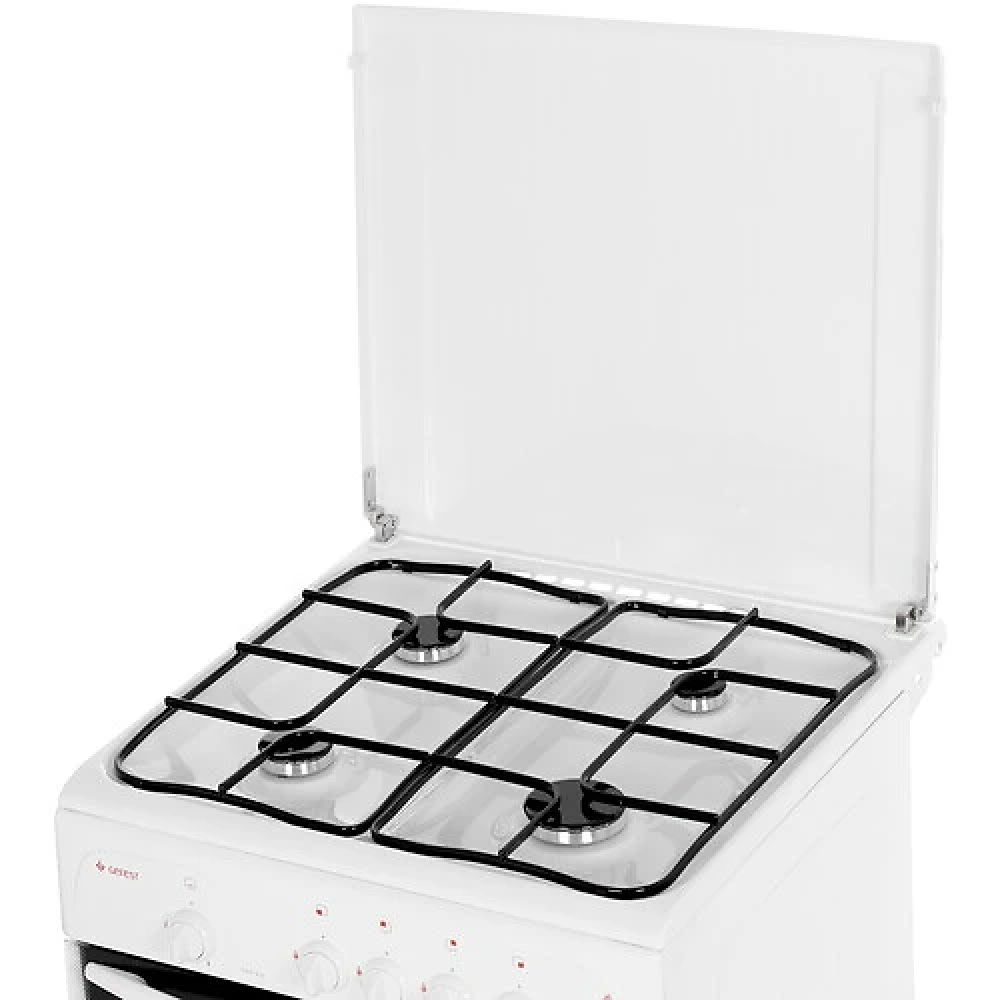 Плита газовая GEFEST 1200 C6 – классический представитель универсального кухонного прибора. Минимальное количество необходимых функций позволяет заметно сэкономить бюджет, при этом не жертвуя собственным удобством в процессе приготовления блюд. Варочная панель по стандарту представлена в виде 4 газовых горелок, которые контролируются при помощи поворотного механизма. Поджиг осуществляется специальным пьезоэлементом, который активируется нажатием механической кнопки на фасадной части плиты.