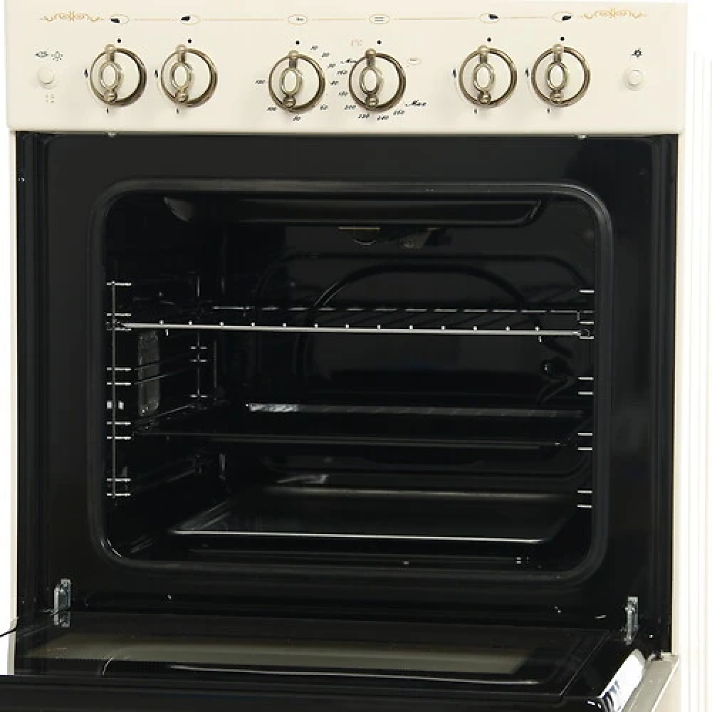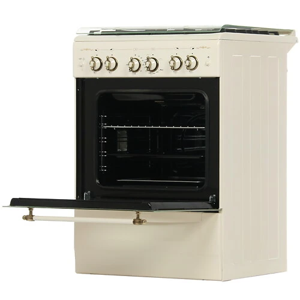 Конфорки устройства GEFEST ПГ 6100-02 0182 дополнены отдельным электроподжигом и стеклянной защитной крышкой. А духовка оснащена термостатом, грилем и вертелом, газ-контролем и яркой подсветкой. Конструкция системы дополнена 2-стекольной дверцей для духовки, вместительным нижним ящиком для посуды и регулируемыми по высоте ножками. Прибор поставляется с противнем и решеткой, жаровней и фильтром.