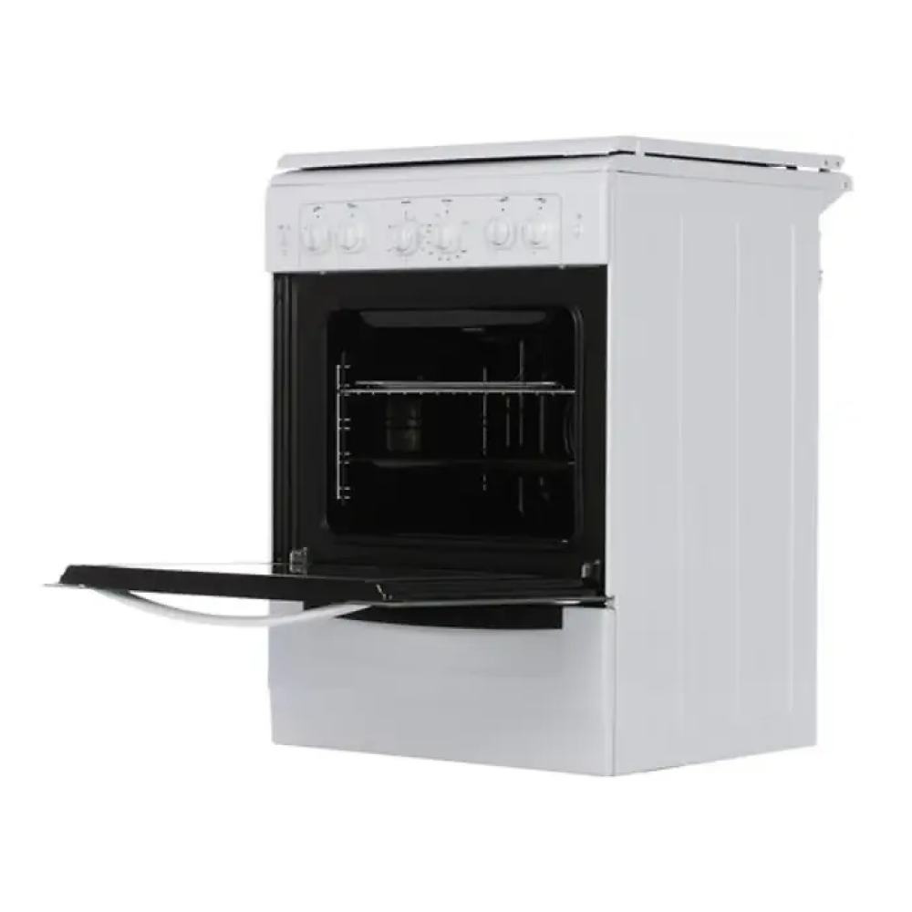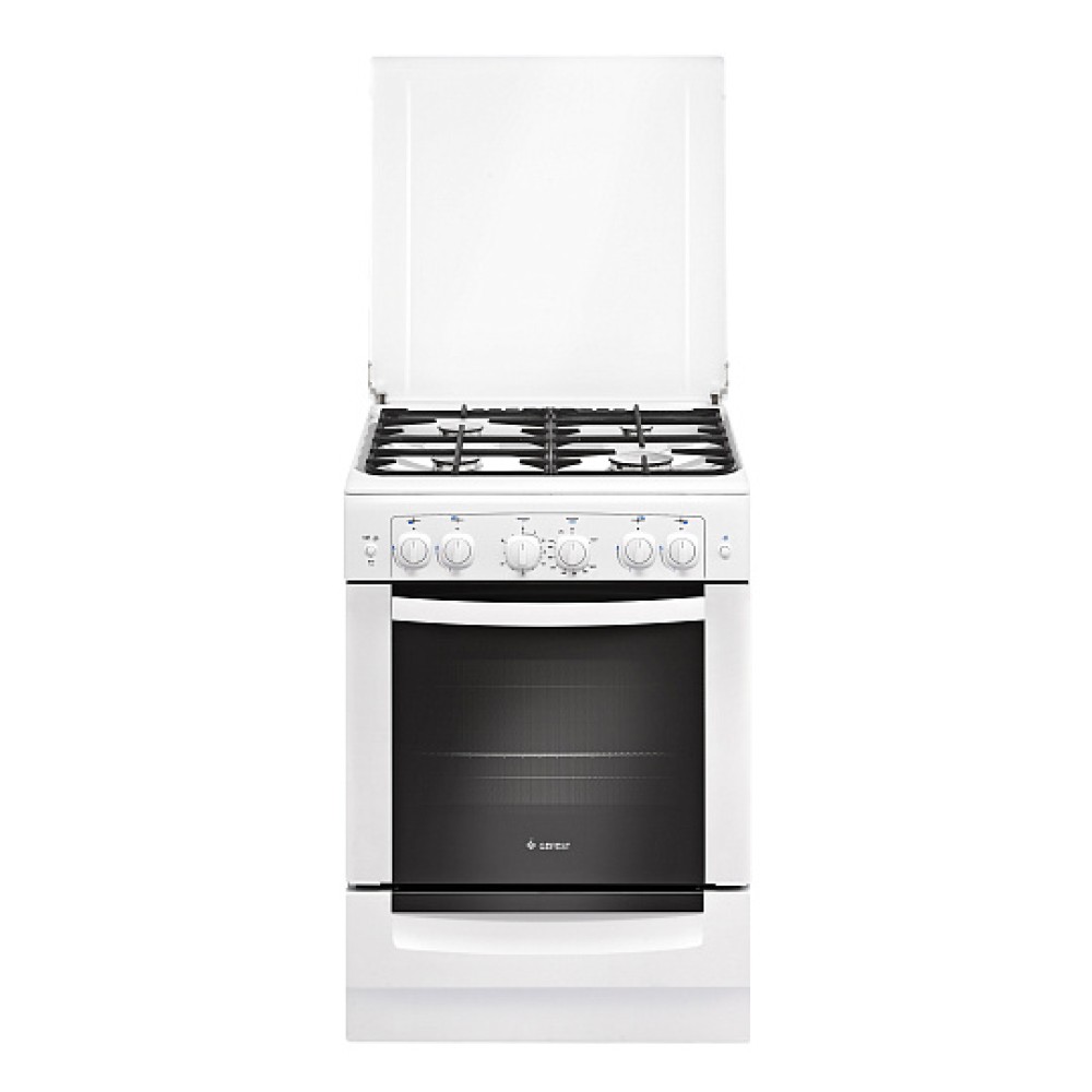 Духовка газовая. Камера обладает оптимальным объемом 52 литра. Внутри установлена подсветка, она позволяет наблюдать за процессом. Есть функция гриля для приготовления блюд. Газ-контроль исключает утечки при эксплуатации. Присутствует вертел для жарки мяса.