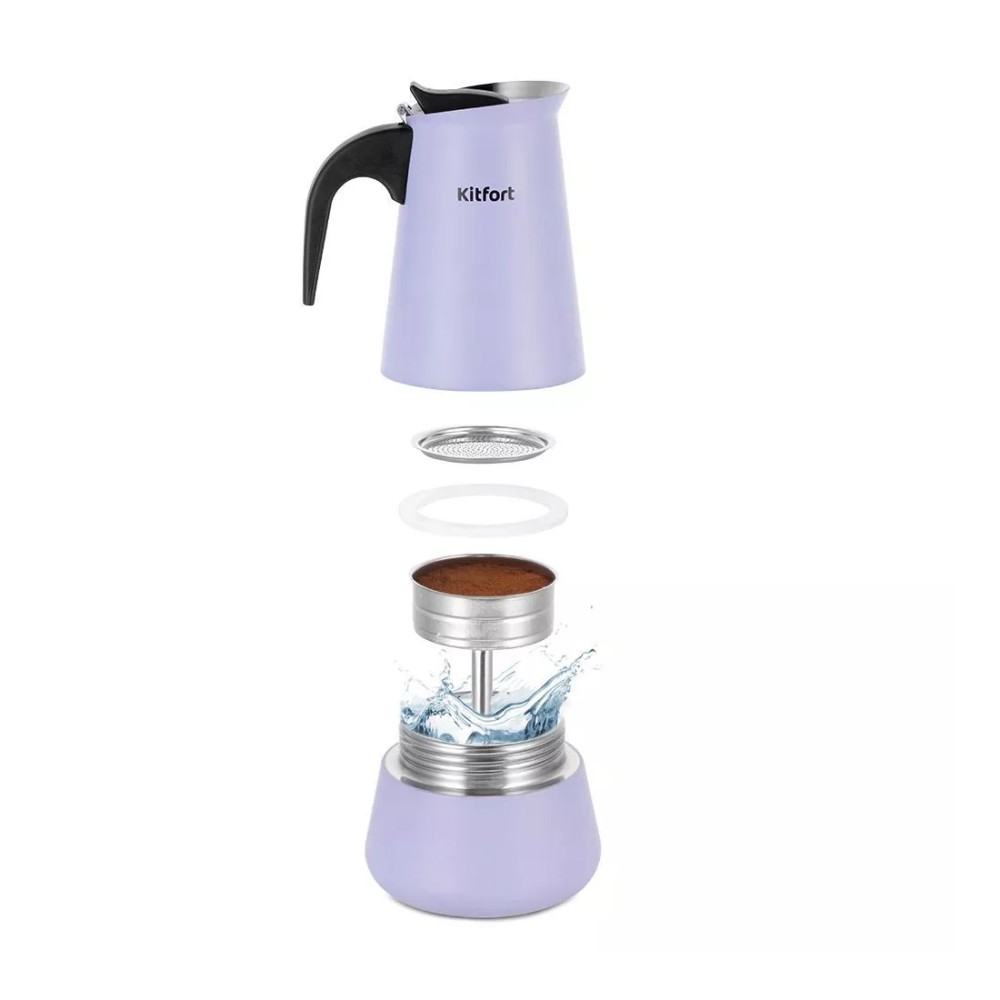 Так вы получаете вкусный кофе за считанные минуты! Практичный носик гейзерной кофеварки КТ-7149 не позволит любимому напитку пролиться мимо чашки – ваша кухня останется чистой, а кофе горячим!