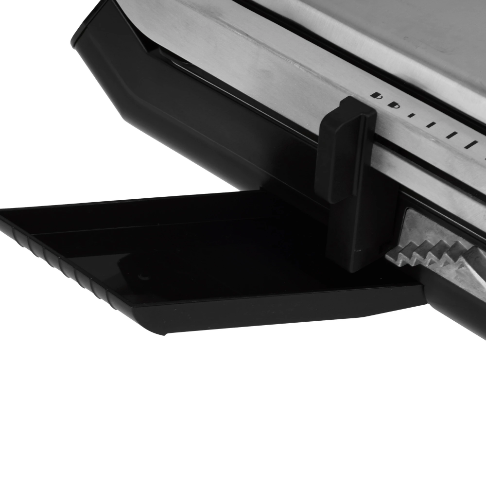 Гриль Brayer BR2008 в корпусе из черного пластика и нержавеющей стали поддерживает раскрытие верхней панели на 180° для увеличения рабочей области и приготовления нескольких блюд одновременно. Конструкция включает лоток для сбора жира и сока. Выбранные настройки отображаются на дисплее.